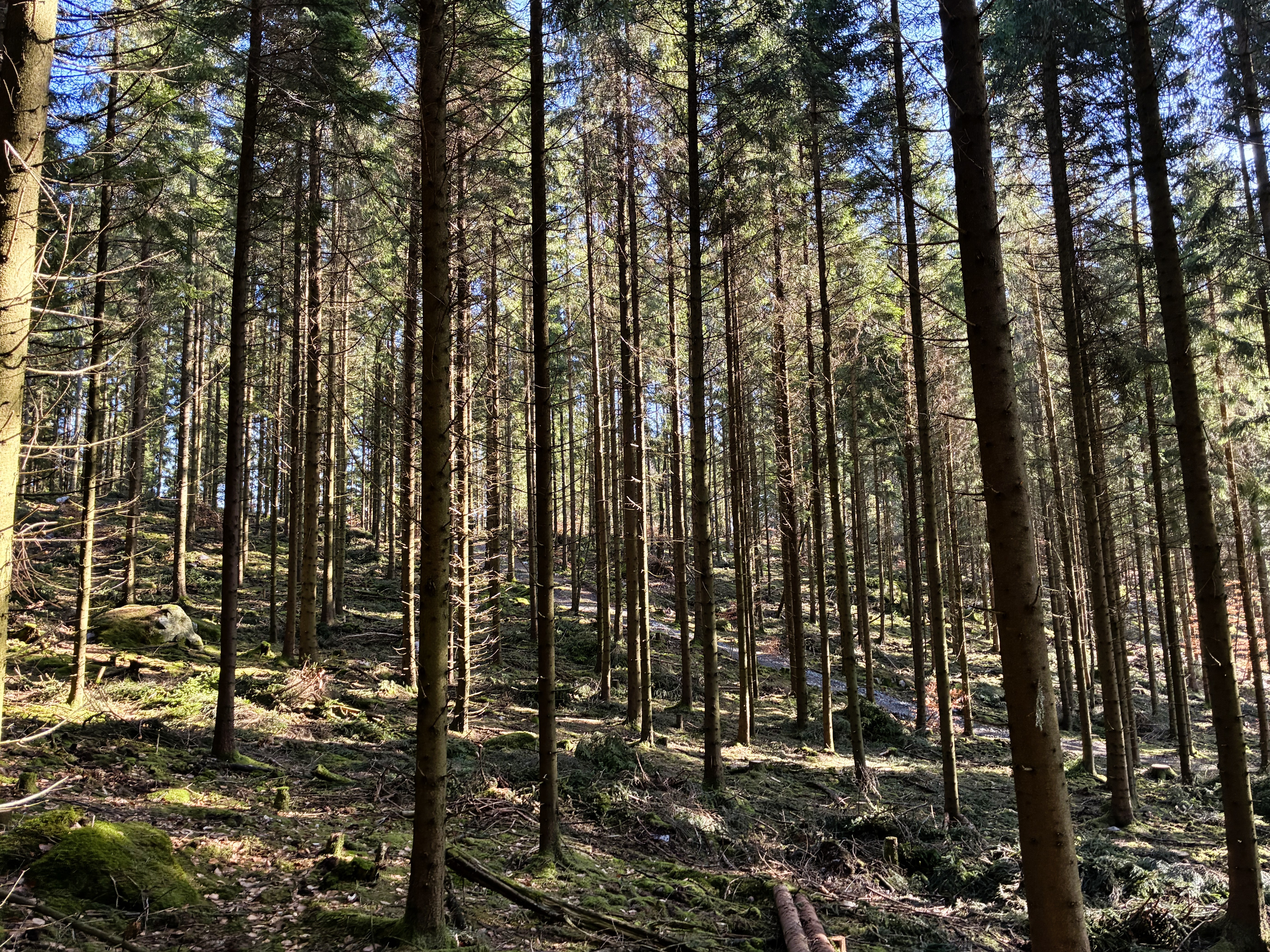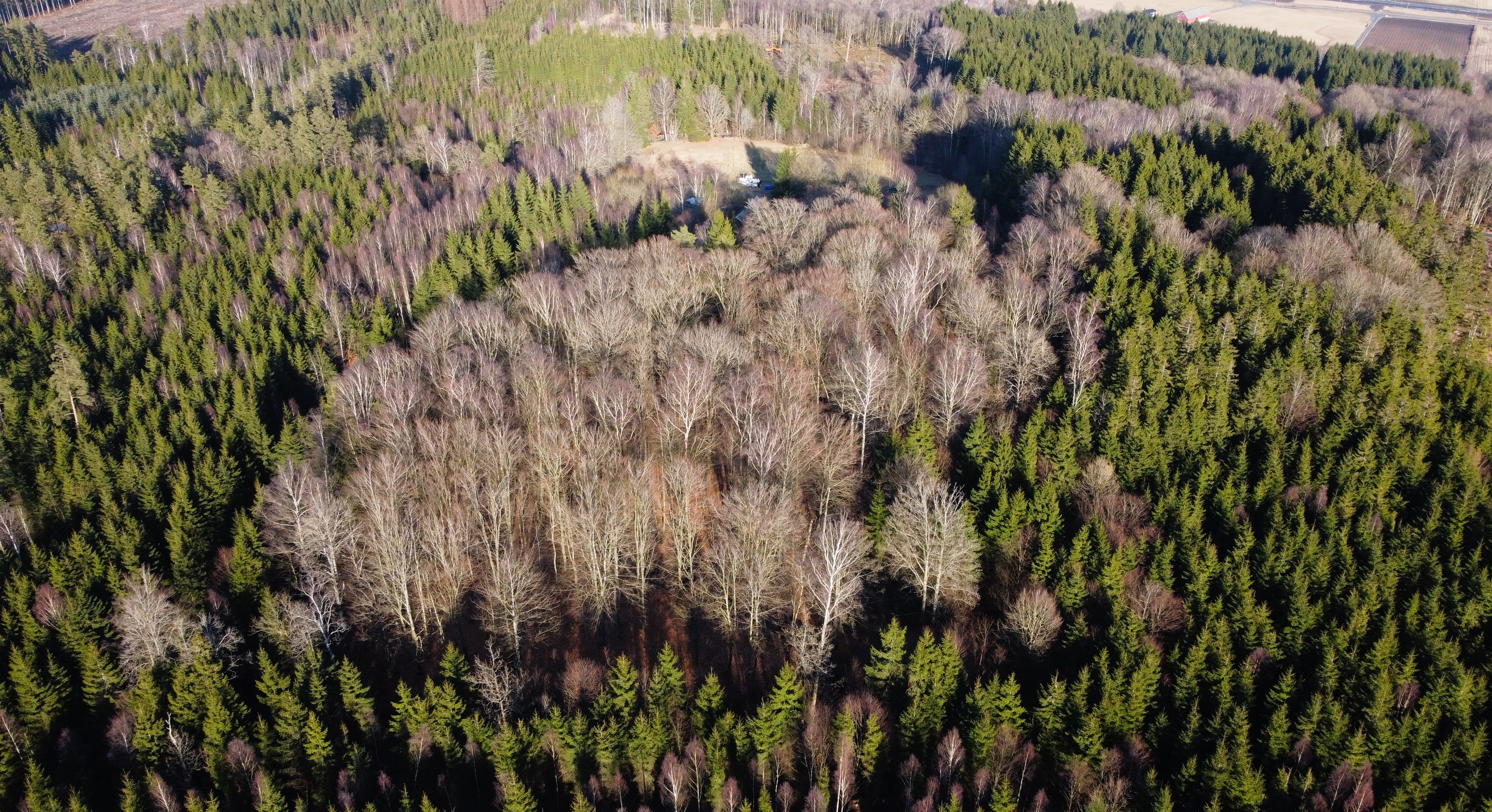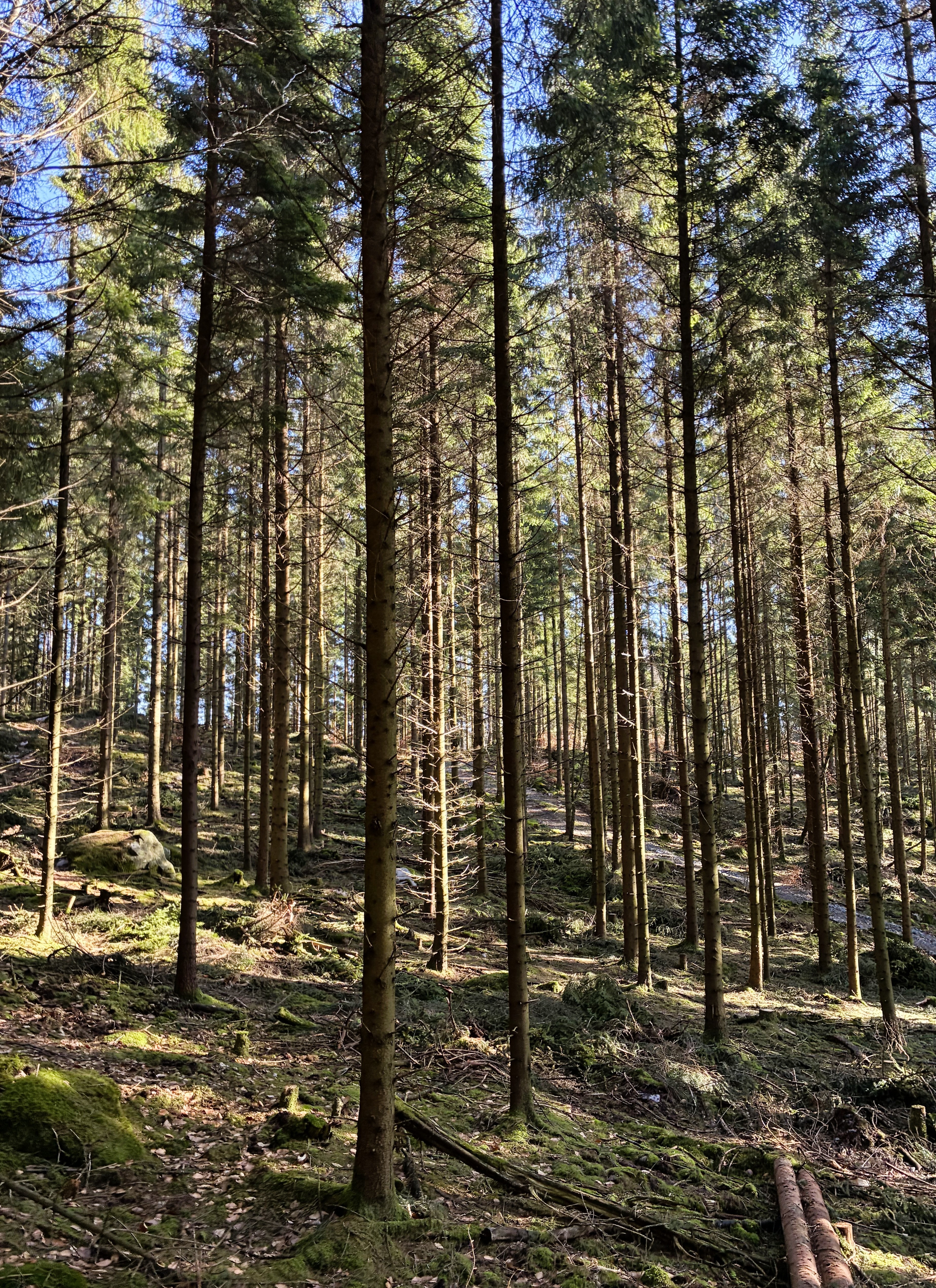 Trädslagsfördelning: 55 % gran, 4 % tall, 17 % ädellöv samt 24 % löv.