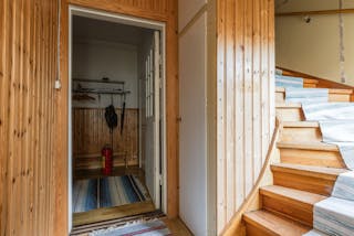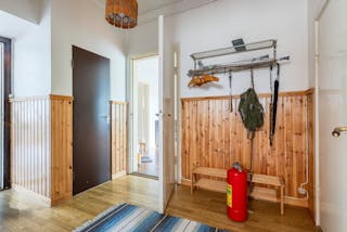 -Hall med trapp till övre plan.