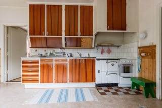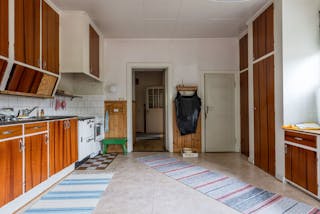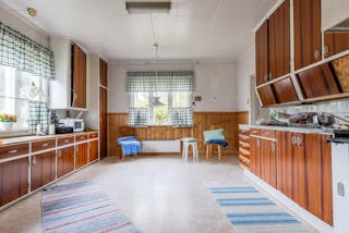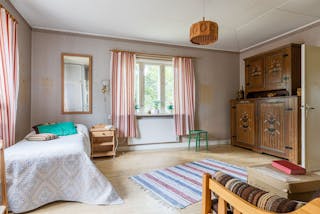 Här möts du av en byggnad som bär på både historia och potential. Ett 1½-plans bostadshus med boarea 98 m² och biyta 30 m². Huset är byggt i trä med klassisk träpanel, torpargrund och tegeltak. Invändigt möts du av tidstypiska detaljer såsom kakelugn, kokspis, öppen spis och trägolv. Rymligt kök med skafferi.