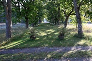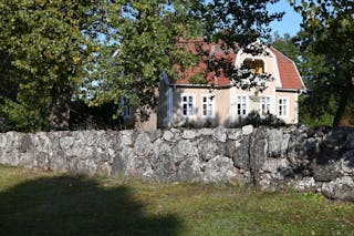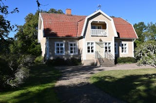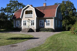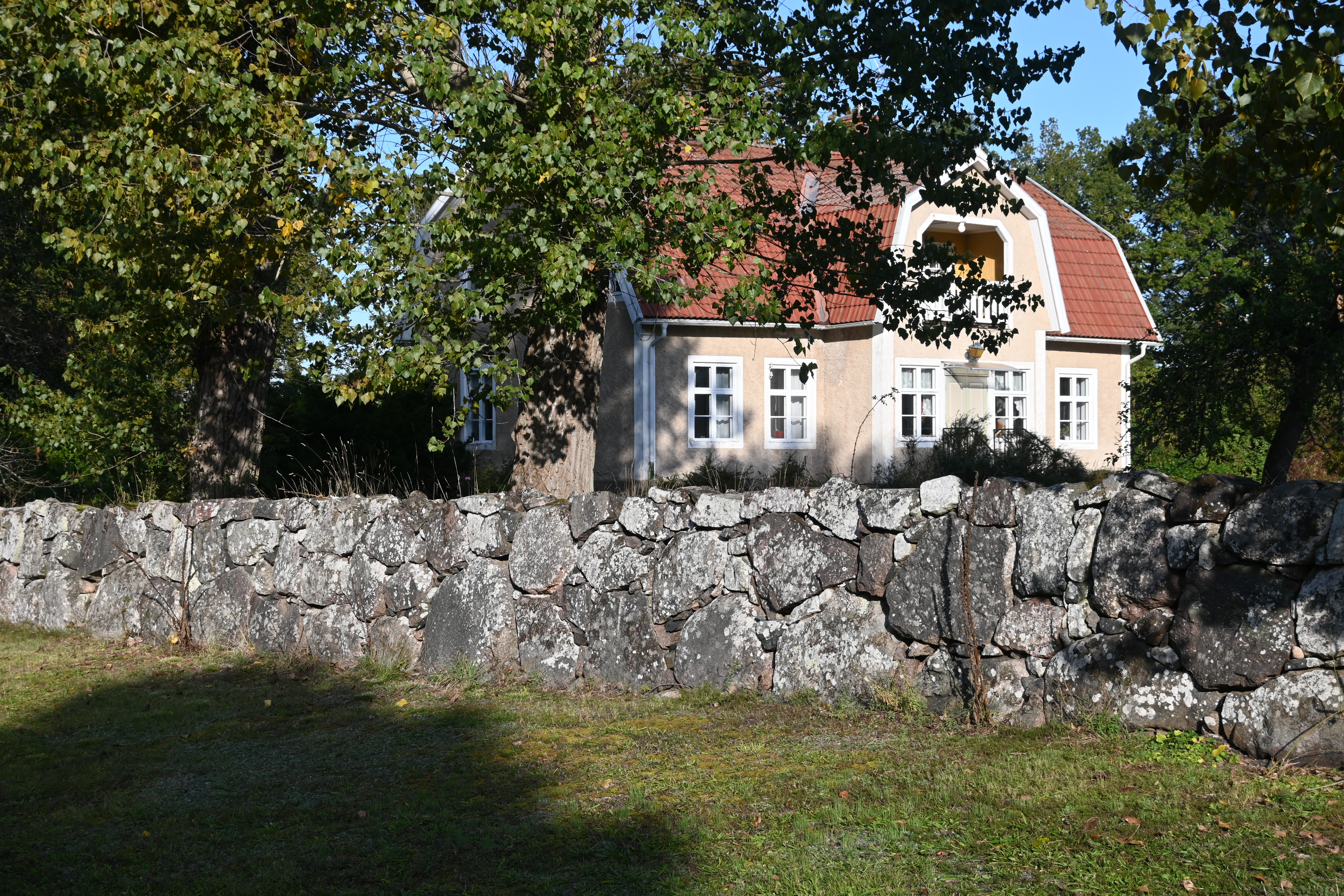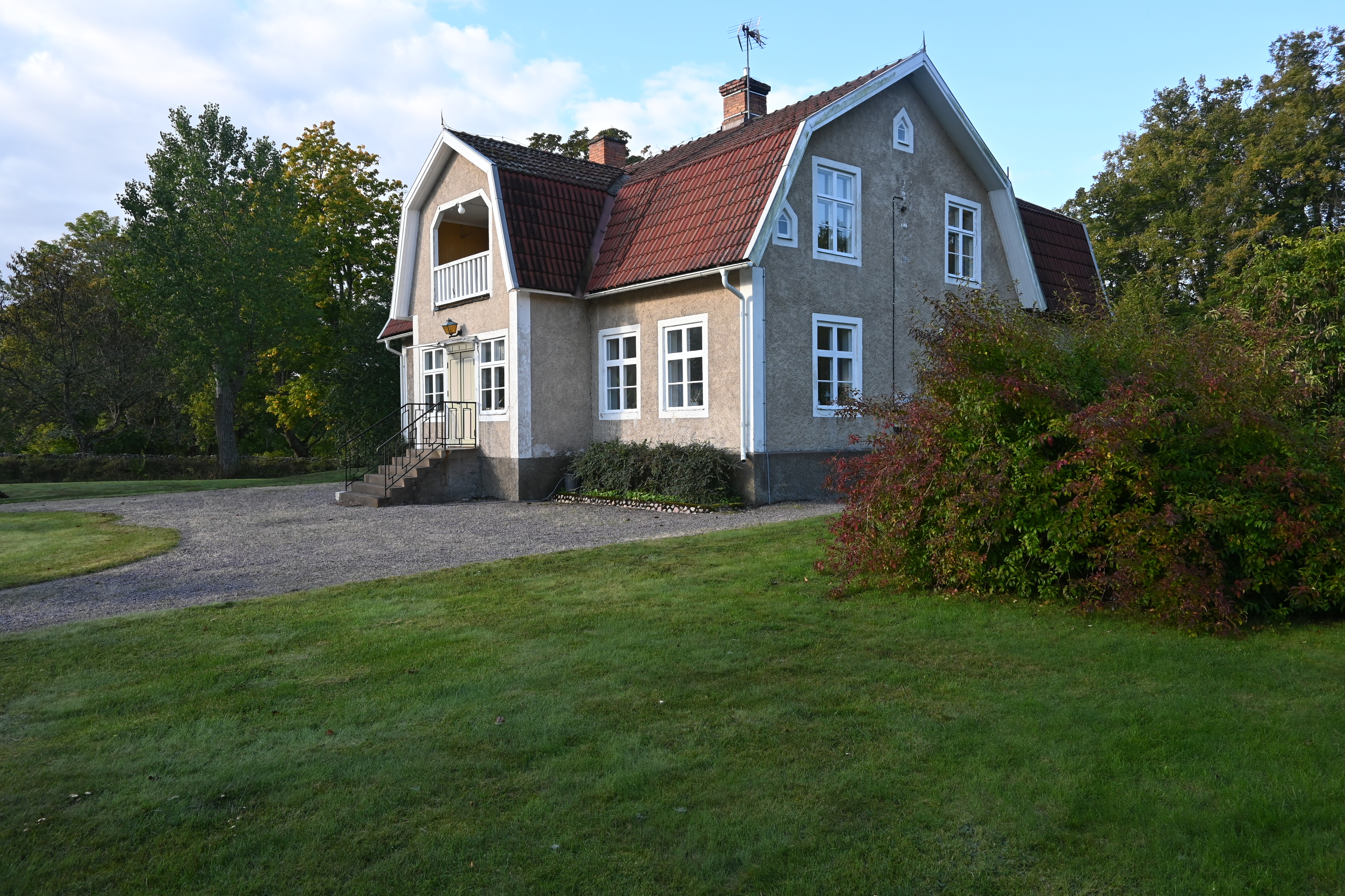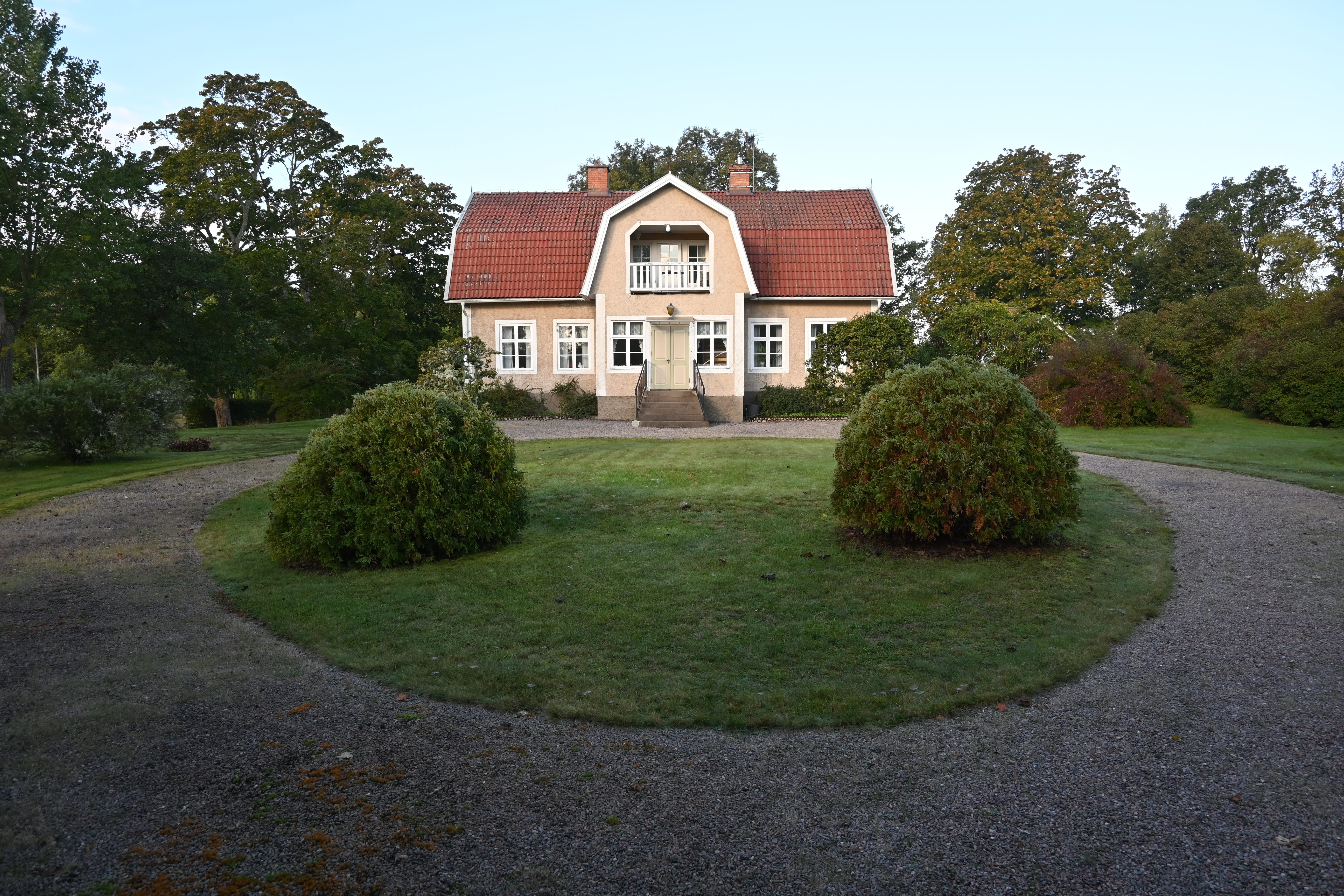 Huset är placerat centralt vid gårdscentrat och omgärdat av trädgård och uppvuxna träd.