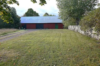 En större som innehåller stalldel med flera boxar för hästar med biutrymmen.