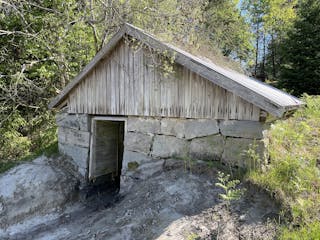 Byggd 1971, träbyggnad på murad grund under plåttak. Inrymmer bl.a djurstall ca 2,25 m i takhöjd, ränne med hötork.