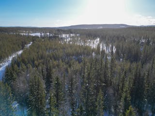 Med bara 15 km till expansiva Lofsdalen hittar Ni igen detta väl samlade skogsinnehav. Trots närheten till skidorten, finns också här den ensliga skogsmarken som lämpar sig både för skogsbruk såsom för den som söker lugnet med jakt och friluftsliv.