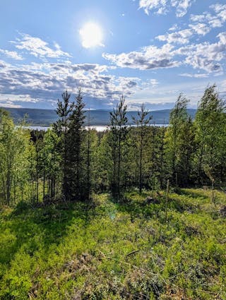 Högt belägen tomt i utkanten av Klövsjö by, med direkt närhet till skogen.