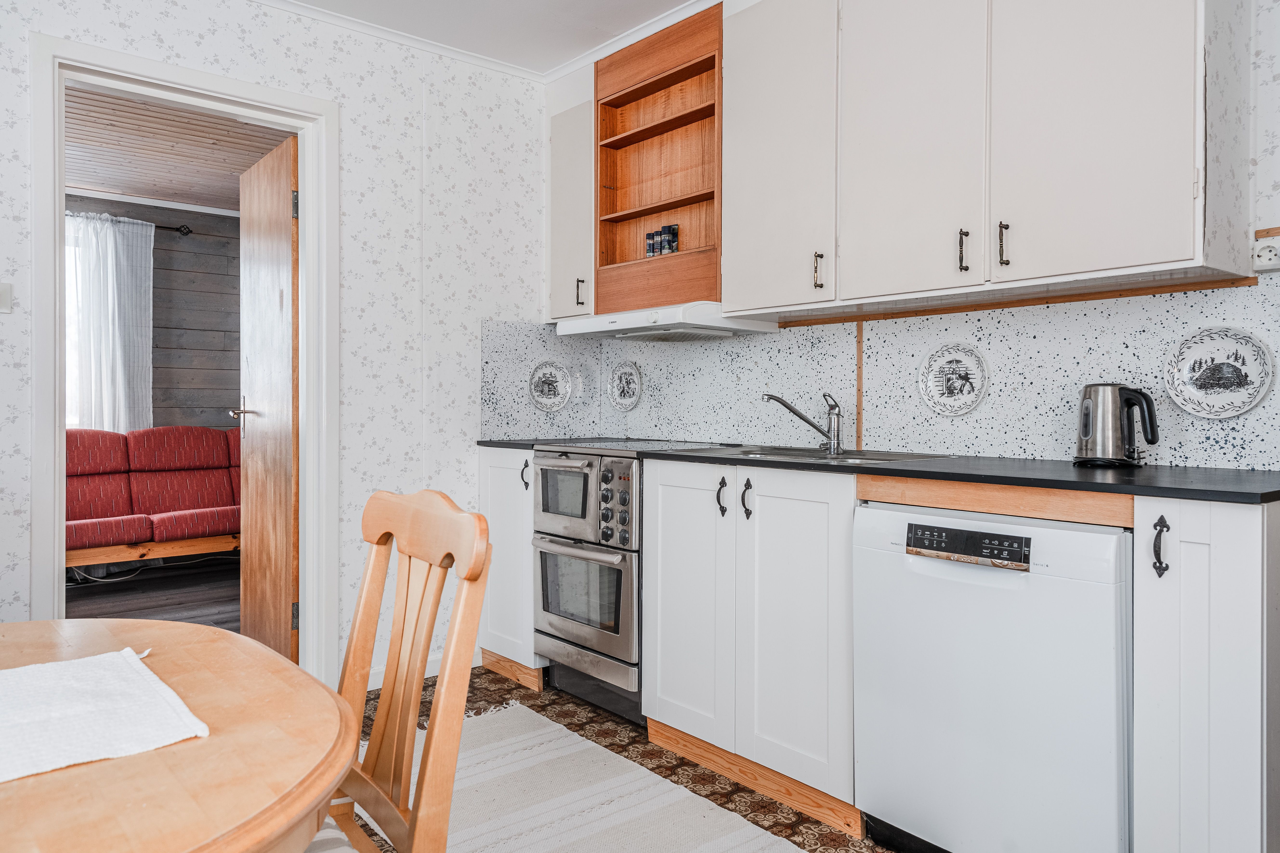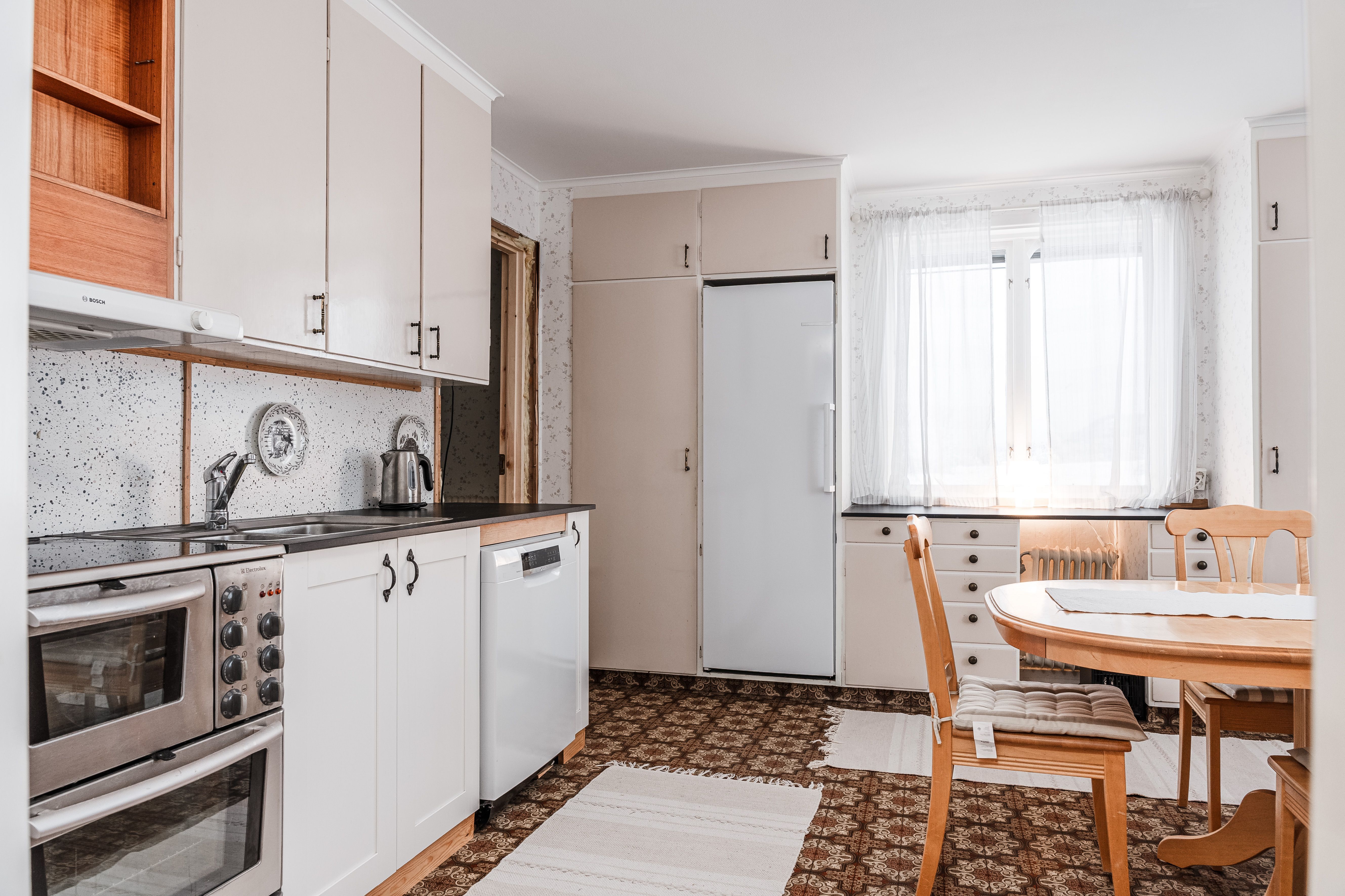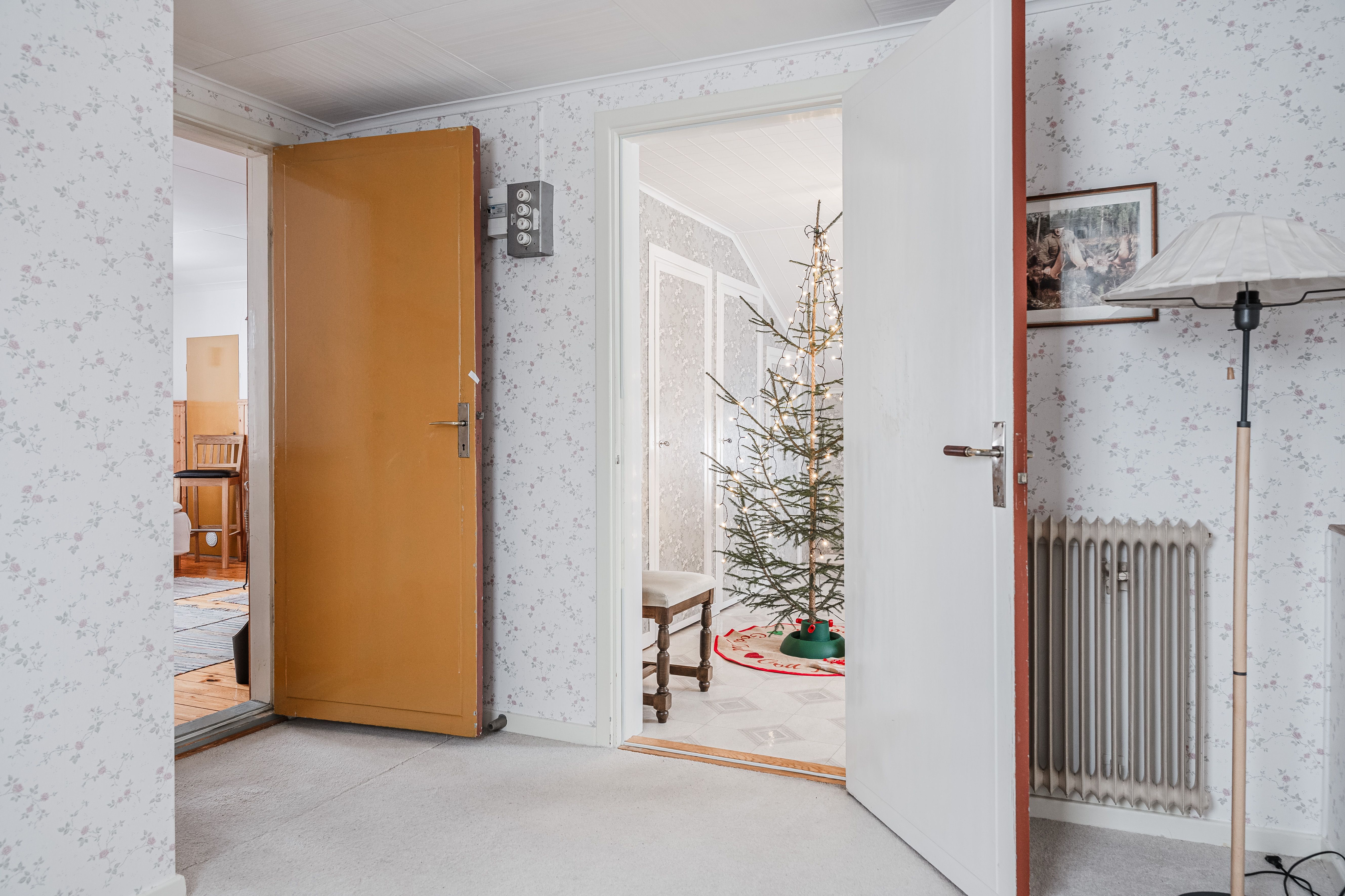 Praktisk hall för avhängning med ingång till badrum med klinker på golv och väggar. Badrummet är utrustad med badkar, tvättställ samt wc. Lantligt kök med fönster i två väderstreck. Allrum med parkettgolv. Sovrum med klickgolv.