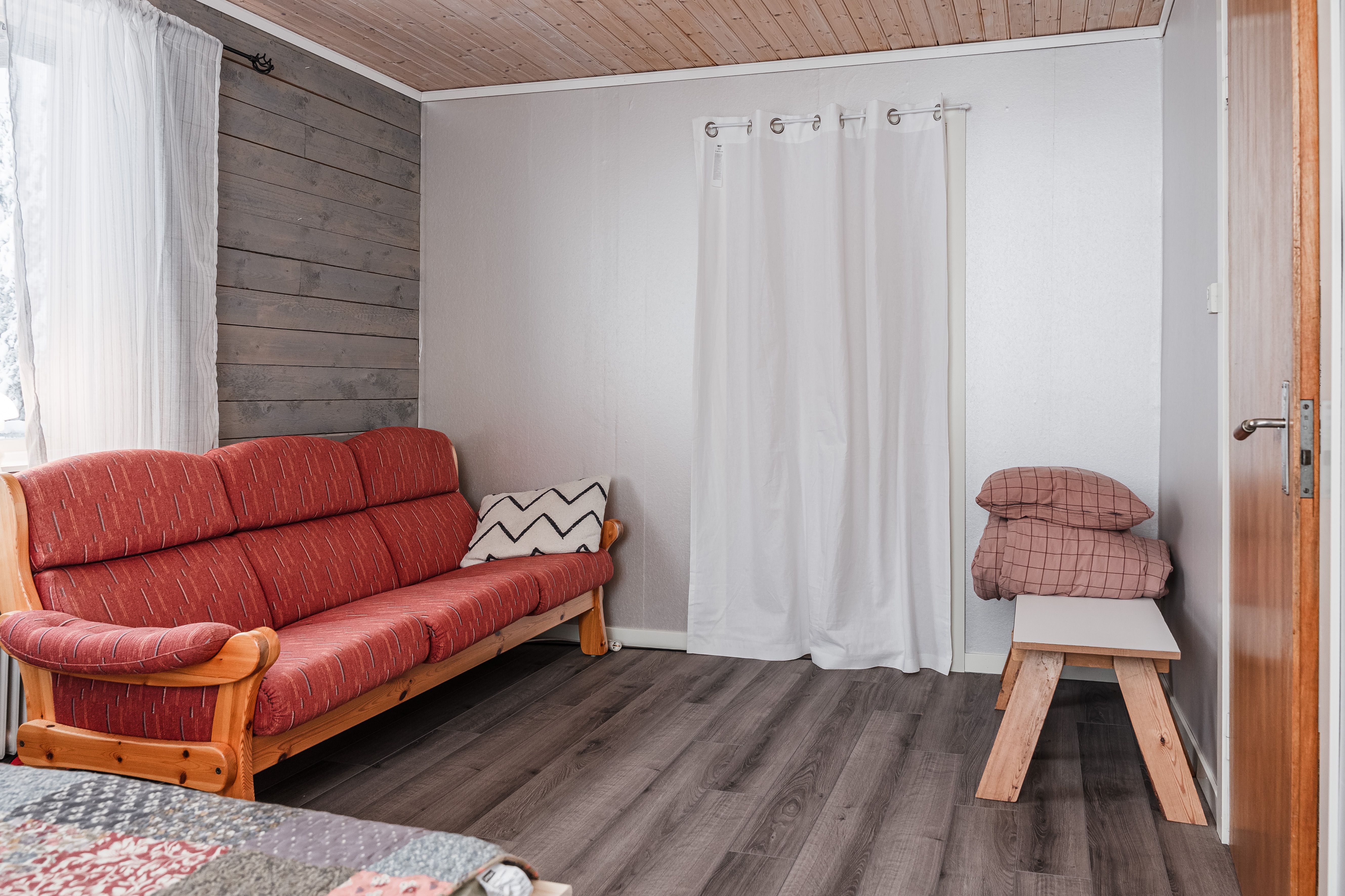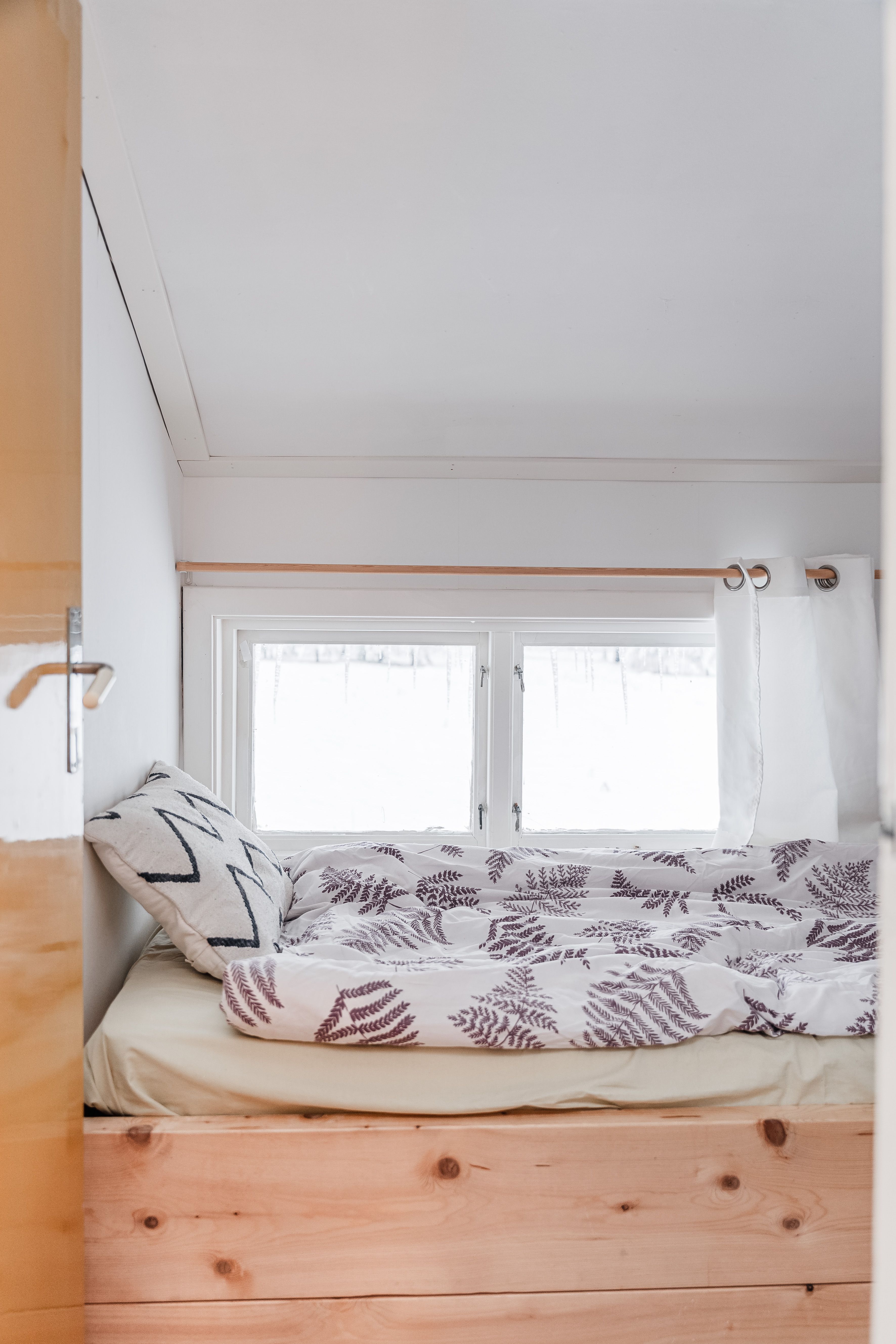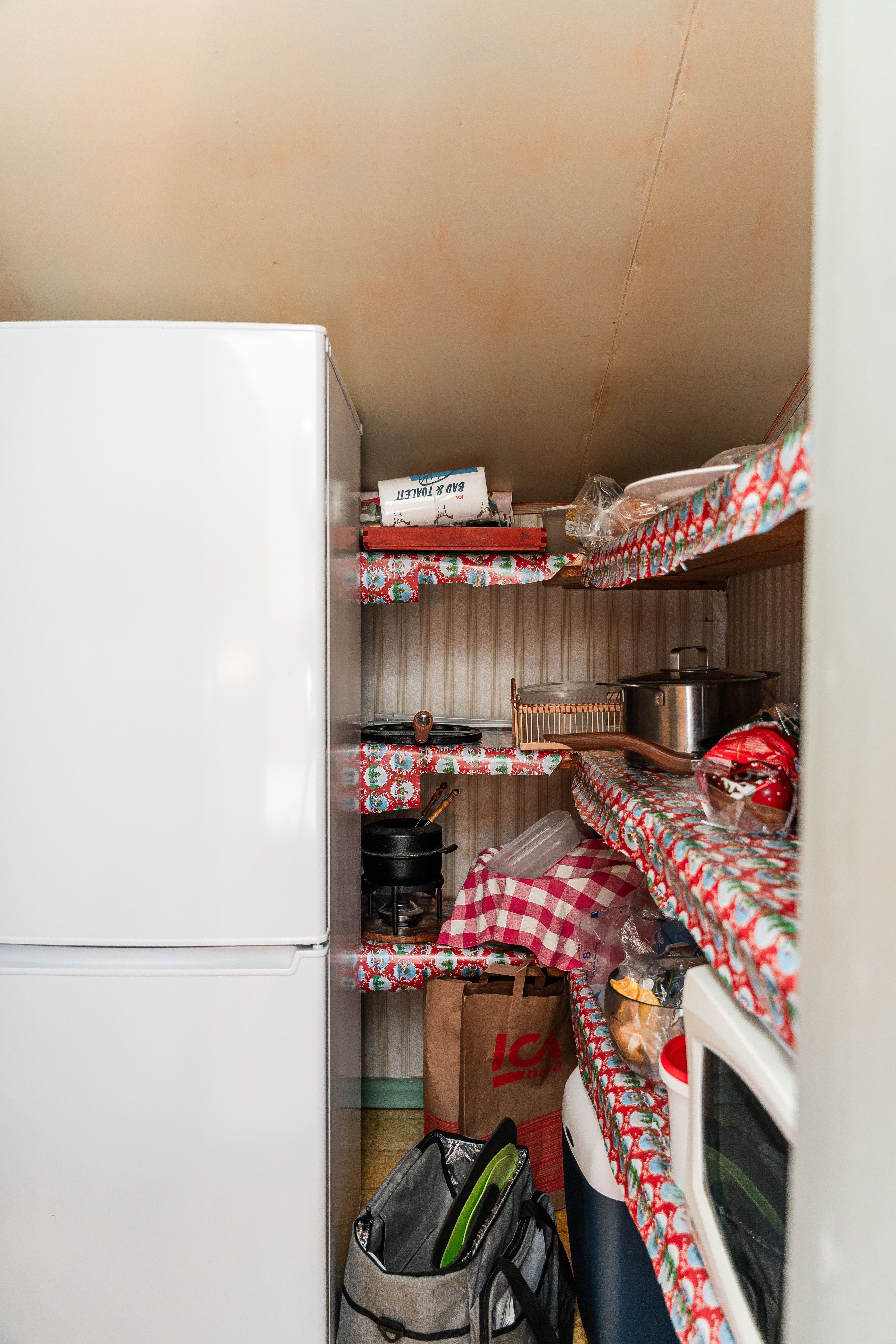 Liten hall med utgång på balkong. Fint sovrum med 3 st garderober. Övre plan har även en lägenhetsdel försett med mindre kök samt vedeldad spis i rummet. Lägenheten har två intilliggande mindre sovalkover.