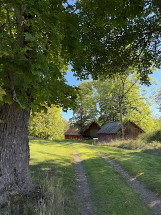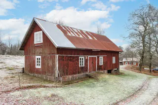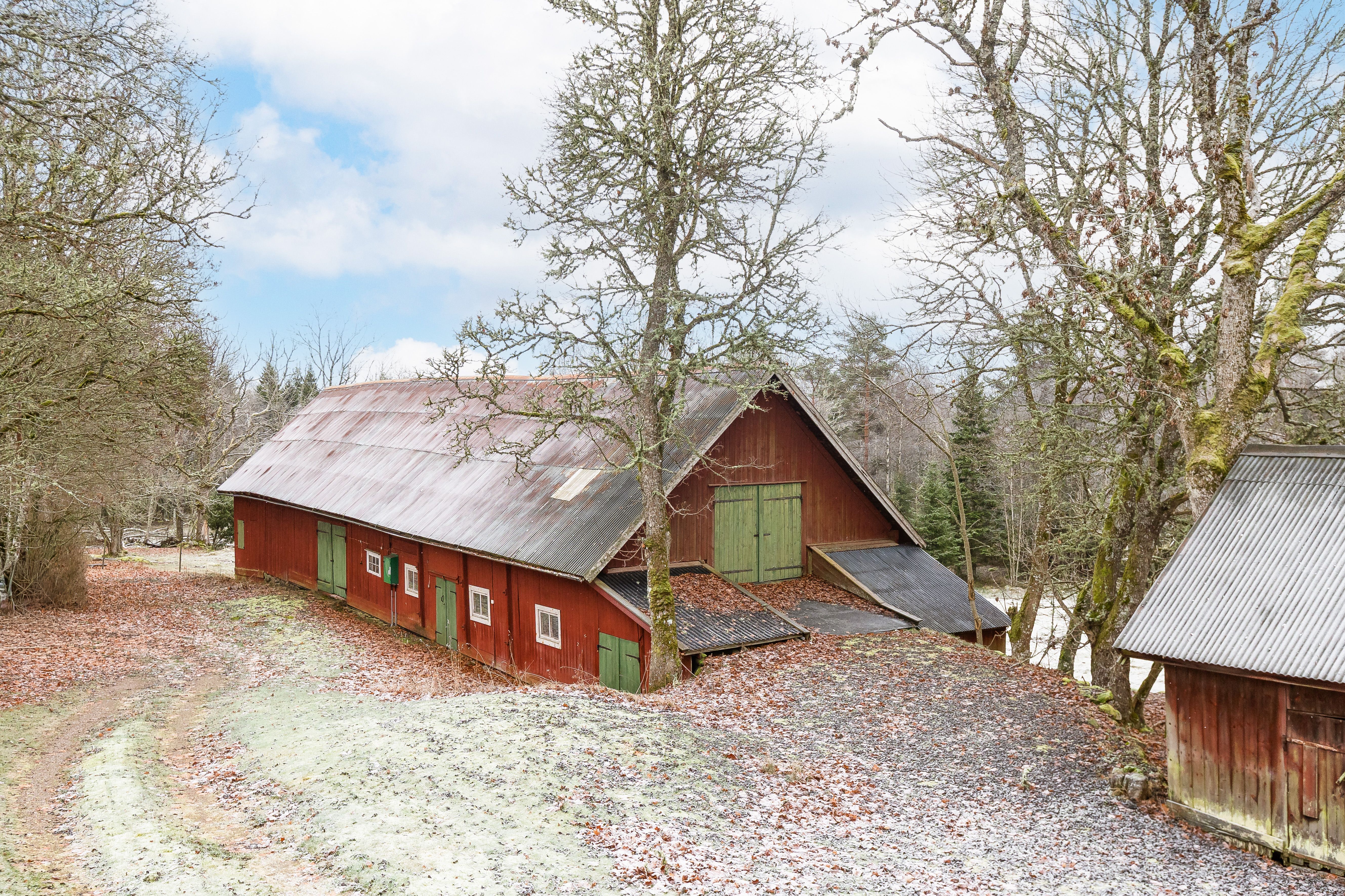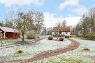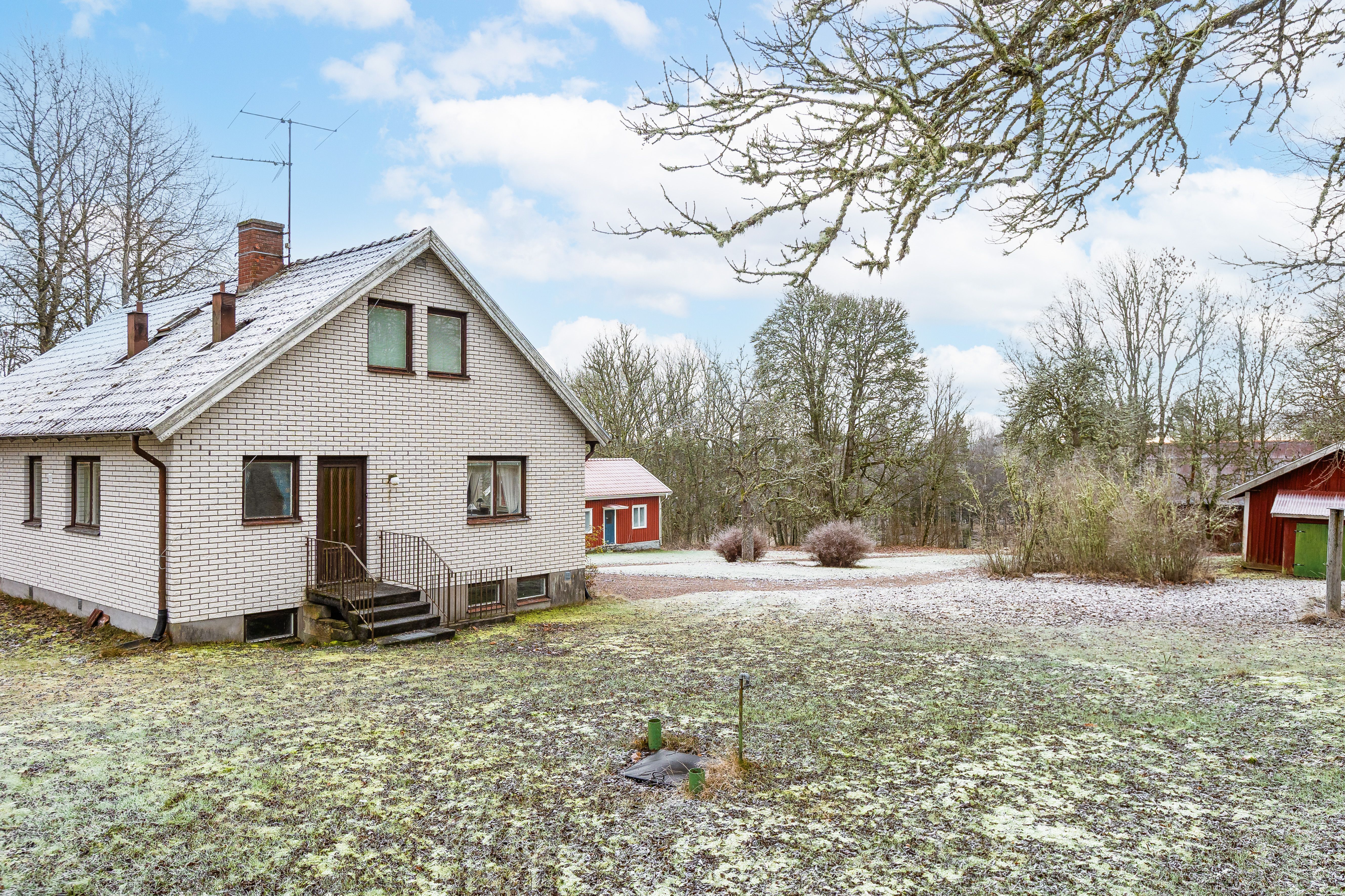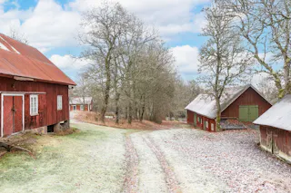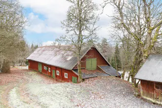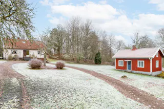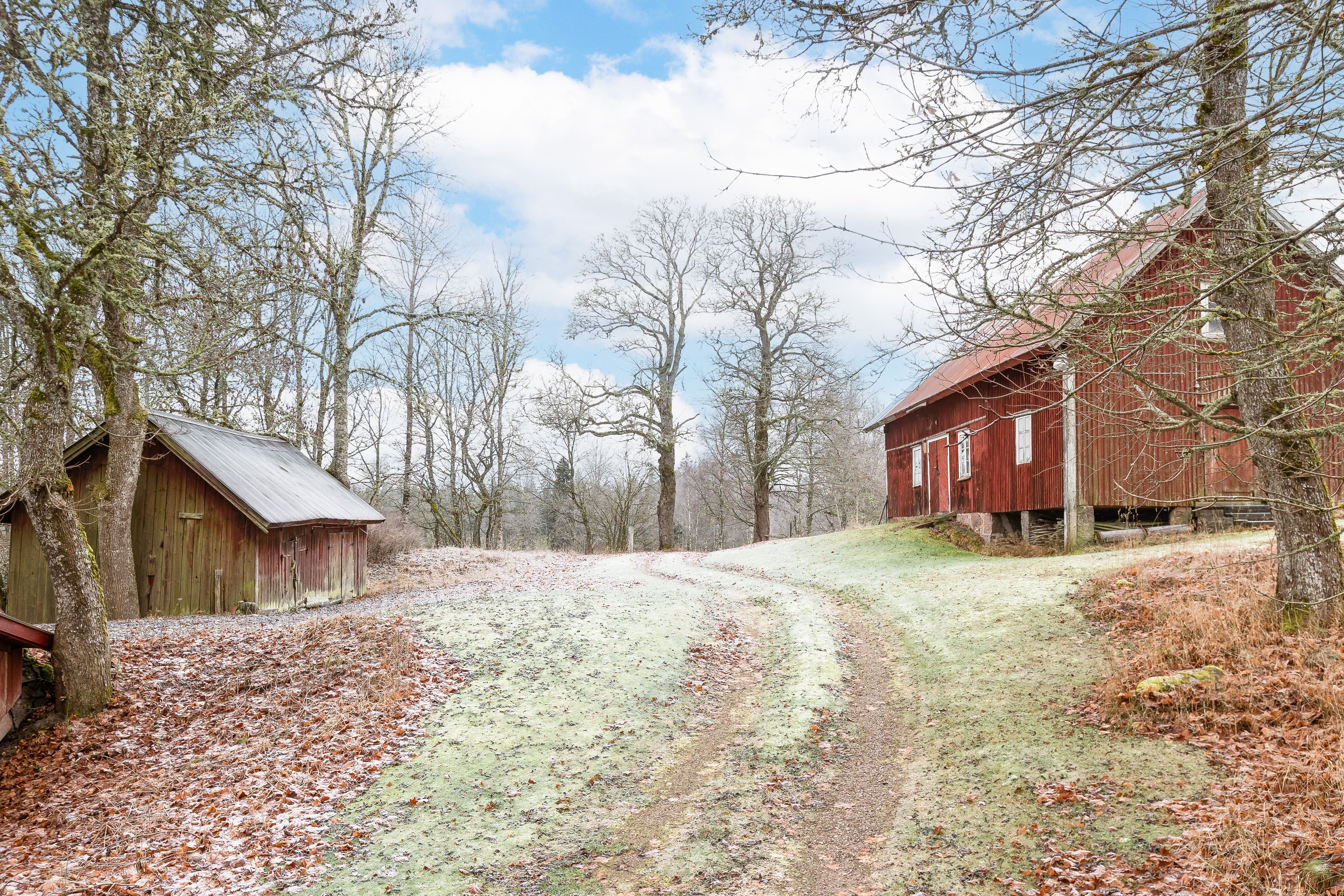 När du svänger in mot gården leds du in av en vacker björkallé som skapar en magisk inramning och förstärker den genuina gårdskänslan redan vid första intrycket. På fastigheten finns ett välbyggt bostadshus från 1968, ett charmigt gästhus, äldre ladugårdsbyggnad, stall samt flera förrådsbyggnader – ett komplett gårdskomplex med god funktion och stor utvecklingspotential.