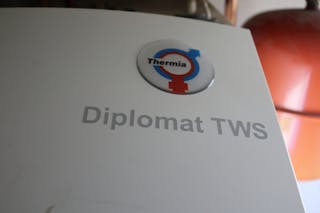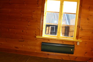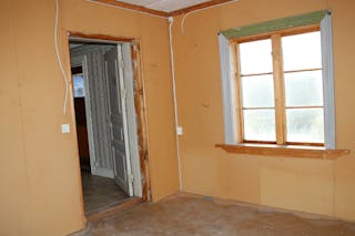 Stomme av trä, fasadbeklädnad av eternitplattor, kopplade 2-glas fönster och yttertak av plåt. Vattenburet värmesystem med jordvärmepump. Kommunalt vatten och kommunalt avlopp.