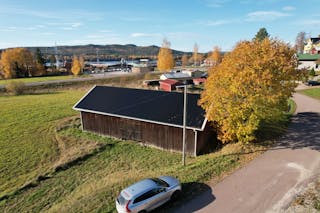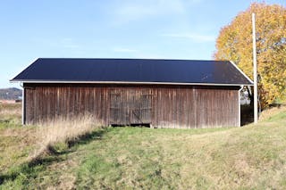 Stomme/fasad av timmer, kopplade 2-glas fönster, och yttertak av plåt, vattenburet värmesystem med jordvärmepump genom kulvert från huset med eternitfasad. Kommunalt vatten och kommunalt avlopp.