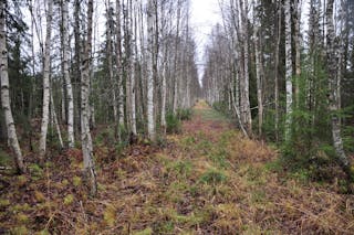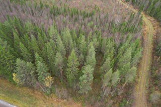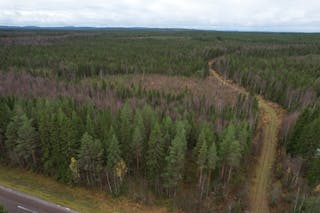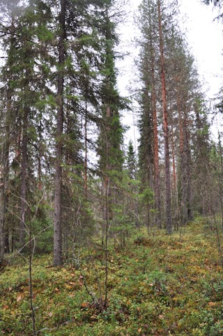 Välkommen till vackra Tornedalen. Här finner ni en fastighet bestående av två skiften med totalt ca 92 ha varav produktiv skogsmark utgör ca 80 ha. Det totala virkesförrådet är ca 8 000 m3sk enligt skogsbruksplanen vilket innebär ett medelförråd på ca 100 m3sk per produktiv ha. Markförhållandena är normala för området och vägnätet täcker in delar av fastigheten samt är av relativt god standard. Det dominerande trädslagen är gran och löv som upptar ca 40 % var av det totala virkesförrådet. Skogens åldersfördelning är relativt jämn.