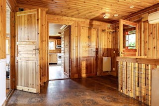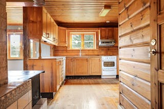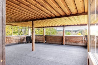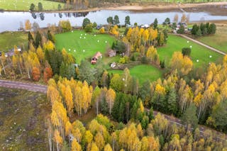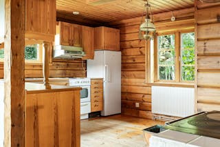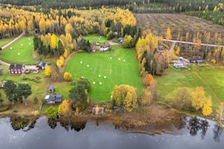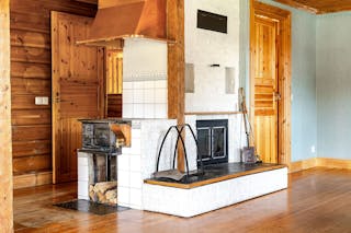Den timrade huvudbyggnaden bjuder på en varm och hemtrevlig atmosfär med gillestuga och braskamin samt en stor altan där du kan njuta av sjöutsikten i kvällssolen. Boendet är fördelat på sex rum och kök, med gott om plats för både vardagsliv och gäster.