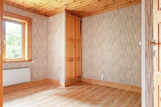 ¤ Gårdshus i 1½ plan på torpargrund med timmerstomme och fasad av stående/liggande panel under tegeltak. El finns, men saknar vatten och avlopp. Nedre plan med hall, kök med vedspis, sovalkov, vardagsrum med öppen spis och förråd. Övre plan oinrett. Jordkällare med jordgolv och stensatt valv under huset.