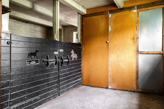 ¤ Ladugårdsbyggnad uppförd på delvis torpargrund och delvis gjuten platta, träregelstomme med stående panel under tak av tegel. El och vatten finns. Nedre plan inrymmer två boxplatser, hökanon och förrådsutrymmen, övre plan höskulle. Vidbyggt f.d. hönshus på platta samt carport på stenplint.