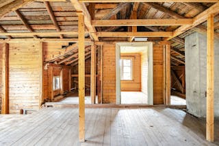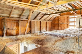 Det vita mindre huset på gården ingår inte i försäljningen utan kommer fraktas bort av säljaren.