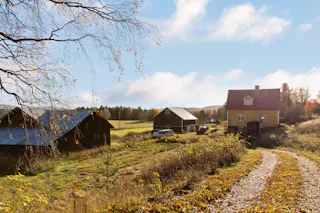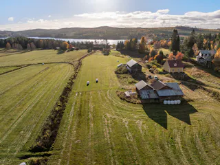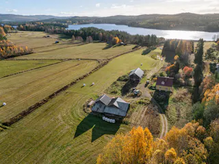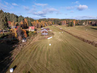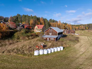 På gården finns flera välhållna ekonomibyggnader: Ladugård, logbyggnad, flera hölador, timrad friggebod – perfekt som gäststuga, kontor eller ateljé