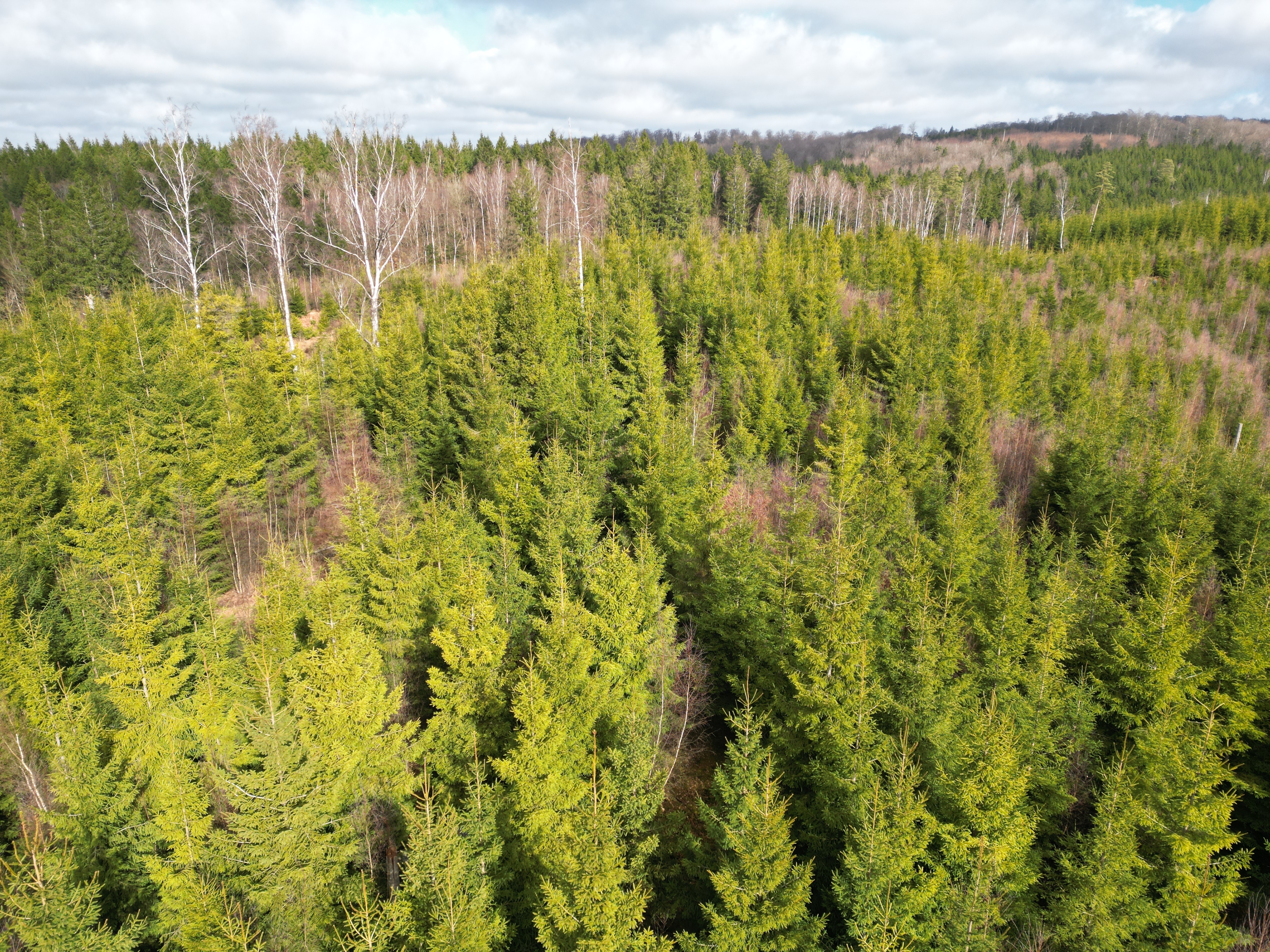 Det totala virkesförrådet uppgår till cirka 13 250 m³sk, vilket motsvarar ett genomsnittligt virkesförråd om cirka 131 m³sk per hektar. Trädslagsfördelningen domineras av gran om cirka 61 %, följt av tall om cirka 12 % samt lövträd om cirka 22 %, inklusive inslag av bok och ek. Medelboniteten är beräknad till cirka 9,3 m³sk per hektar och år, vilket ger goda förutsättningar för ett långsiktigt och aktivt skogsbruk.