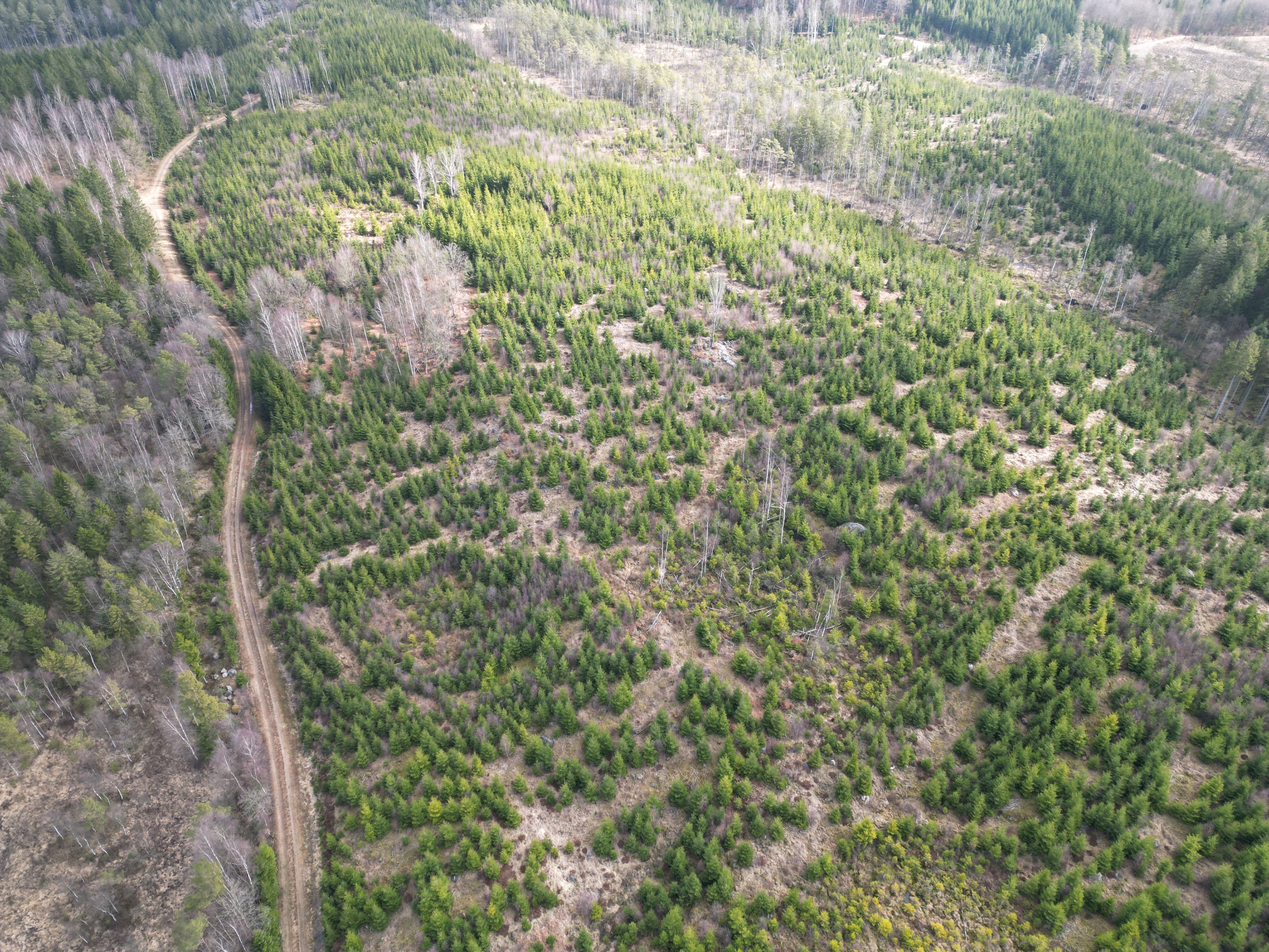 Enligt den uppdaterade skogsbruksplanen från 2026‑03‑20, uppgår den produktiva skogsmarksarealen till cirka 101,4 ha. Det totala virkesförrådet uppgår till cirka 13 250 m³sk, vilket motsvarar ett genomsnittligt virkesförråd om cirka 131 m³sk per hektar.