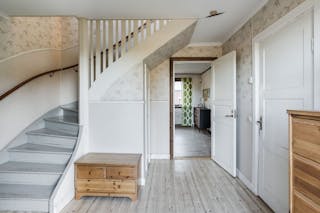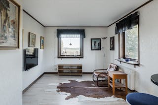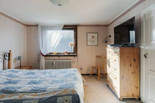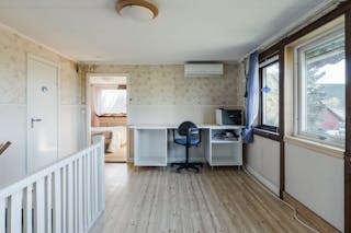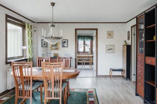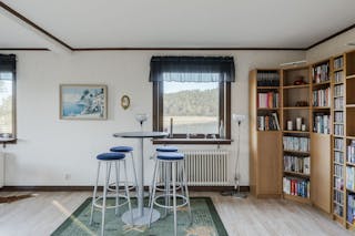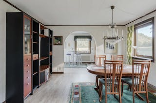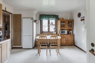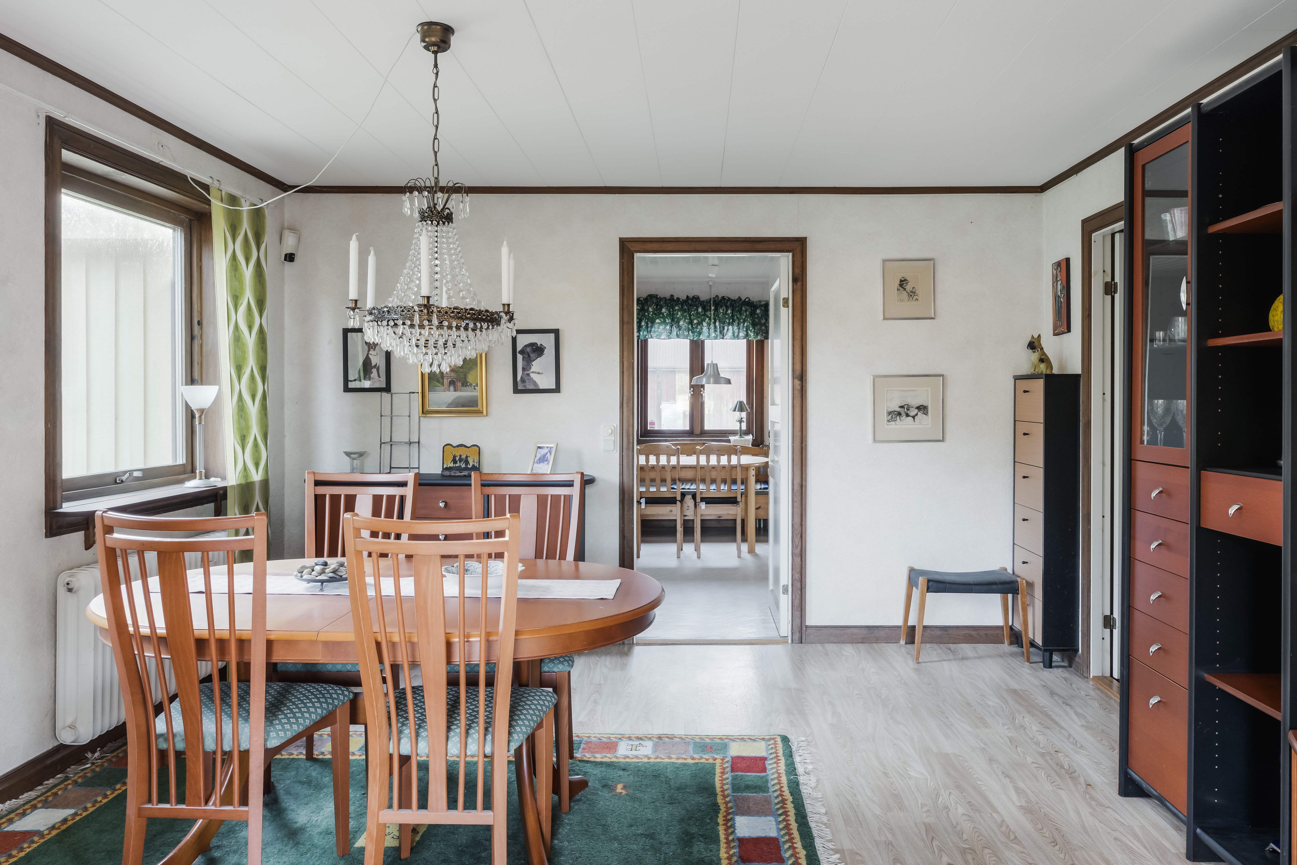 1½-plans villa med BOA om ca 140 m² med källare. Entréplan erbjuder en rymlig planlösning fördelat på 4 rum, kök och klädkammare. Här finns även en toalett i anslutning till hallen där det sedan 2010 finns golvvärme. övervåningen bjuder på tre sovrum, möblerbar hall, en toalett samt en del oinredd vind. Utöver renoveringar utförda i hall och badrum har även balkongen rivits och en altan med utsikt över padock och närliggande betesmarkerna uppförts.