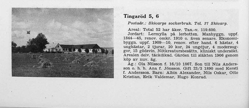 Kommande – Strax öster om Skivarp ligger Tingaröd 5:2, en väl samlad lantbruksfastighet om totalt ca 50 hektar med tillhörande gårdscentrum. Fastigheten omfattar mangårdsbyggnad samt flera ekonomibyggnader, däribland äldre svinstall, ett svinstall från 1970‑talet och ett häststall uppfört under 1980‑talet. Åkermarken är rationellt samlad kring gårdscentrat och fördelad i tre brukningsskiften. Gårdscentrat är fritt och vackert beläget i ett lätt böljande landskap med närhet till Skivarp, Skurup och kusten.