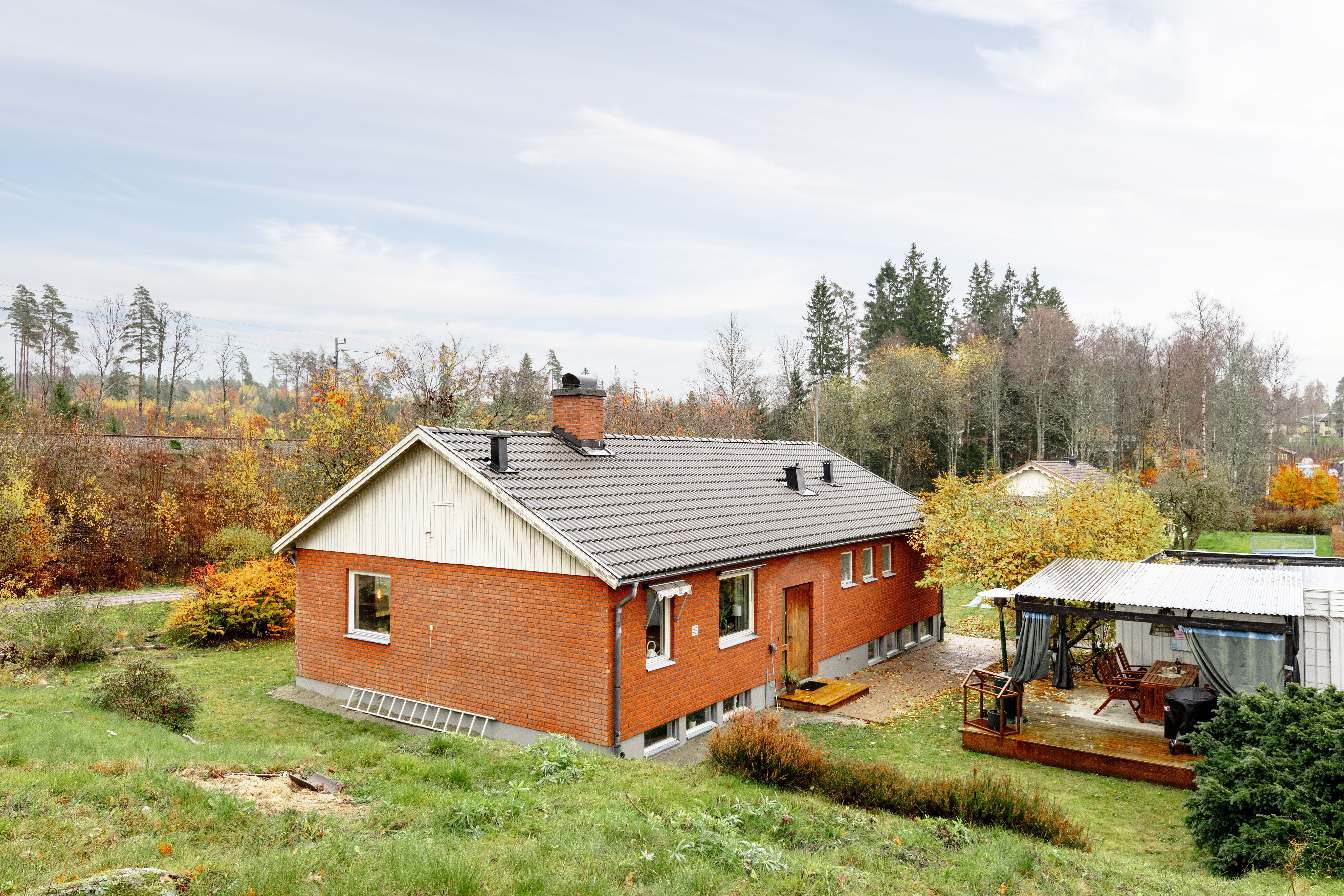 Välkommen till en gedigen och välplanerad enplansvilla med källare, belägen på en lugn återvändsgata i det familjevänliga samhället Bor. Huset är uppfört med klassiska materialval och har en stabil konstruktion med trästomme, tegelstensfasad och betong/källargrund. Taket är belagt med betongpannor (omlagt 2004) och huset har kommunalt vatten och avlopp. Uppvärmningen sker via bergvärmepump, vilket ger låg driftkostnad, och ventilationen är självdrag. Fönstren är av 3-glastyp som bidrar till god isolering och komfort.