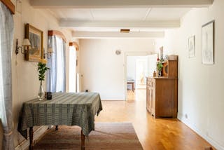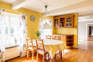 Strax utanför Trelleborg ligger denna kringbyggda gård som erbjuder en trivsam boendemiljö i en klassisk skånelänga med generösa ytor. I bostaden finns charmiga detaljer som trägolv, klädda takbjälkar, välvda fönsternischer och spröjsade fönster, vilket bidrar till en varm och genuin atmosfär.