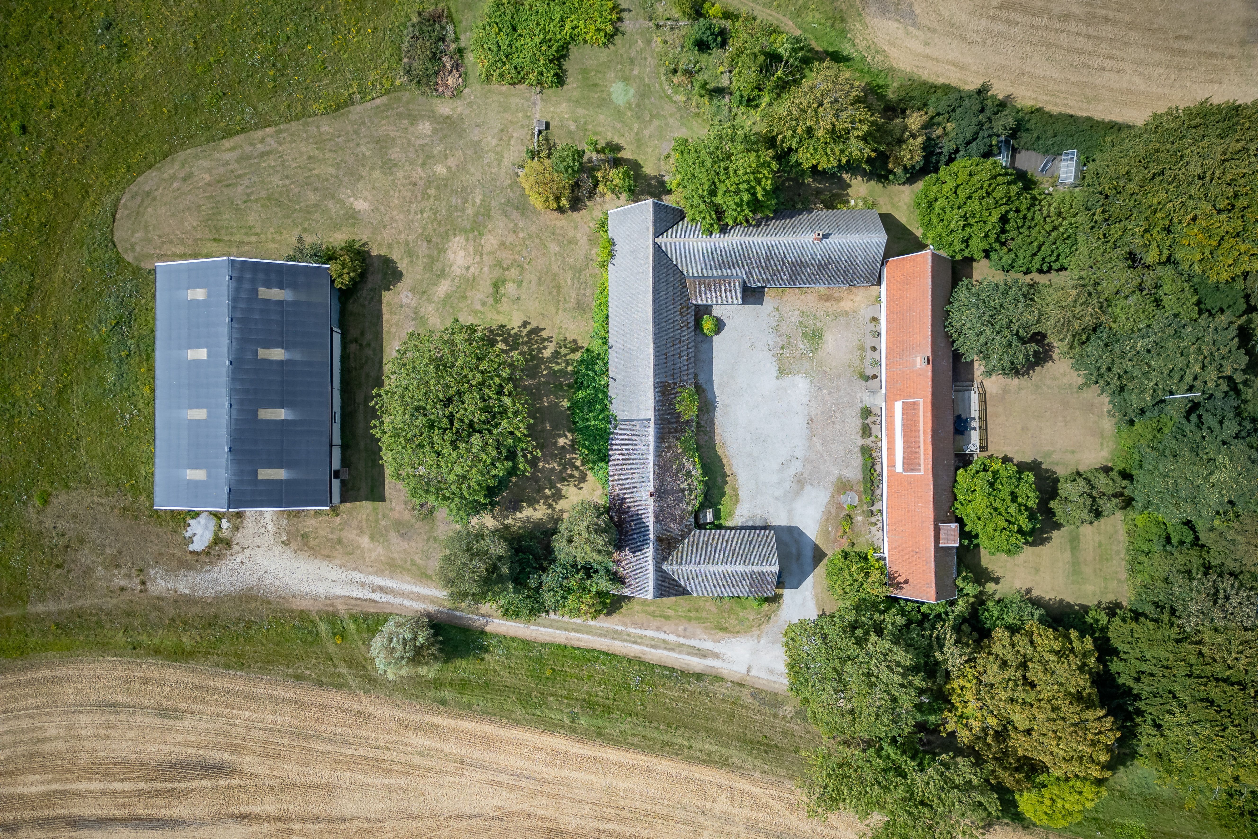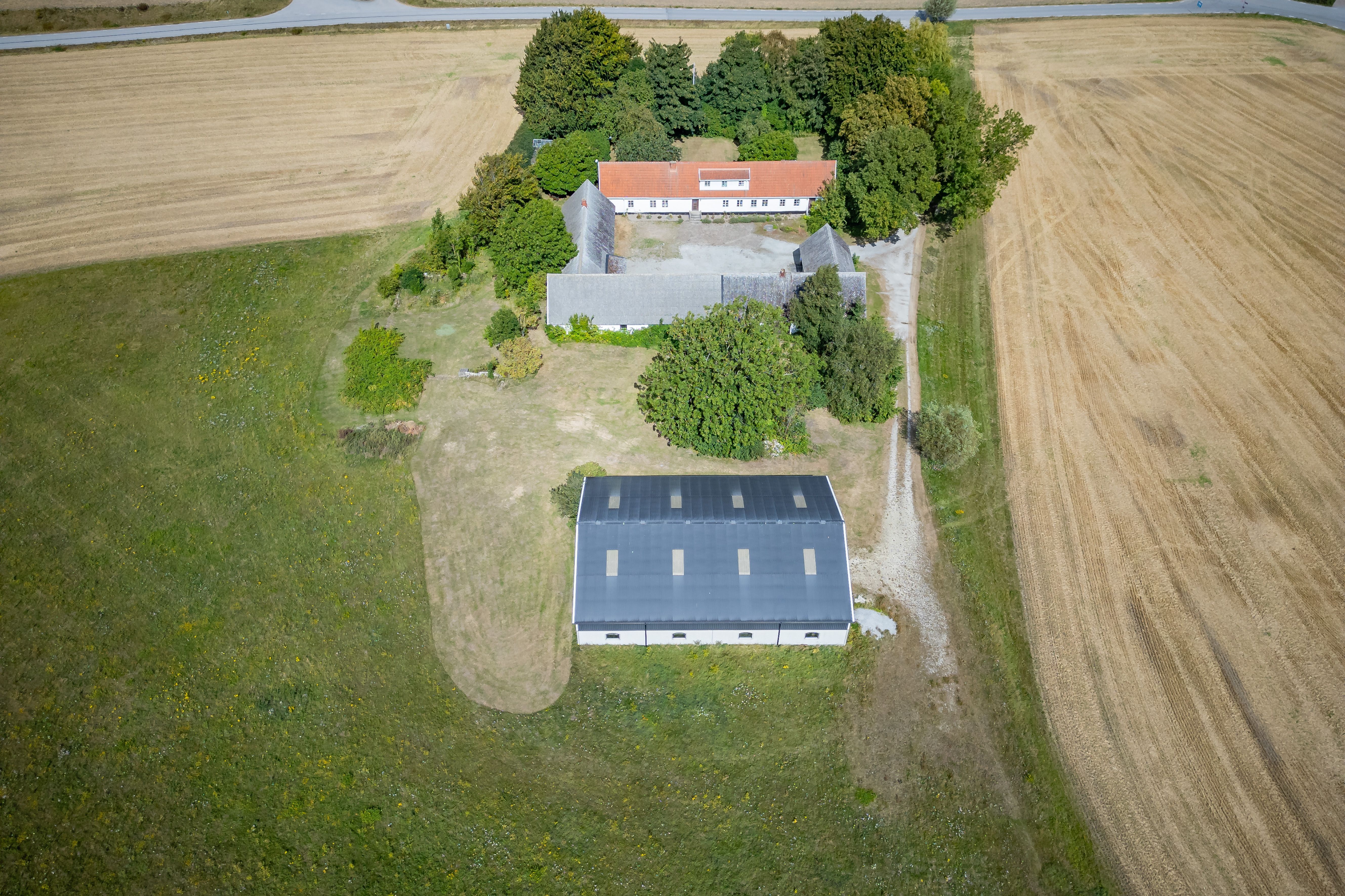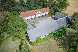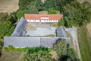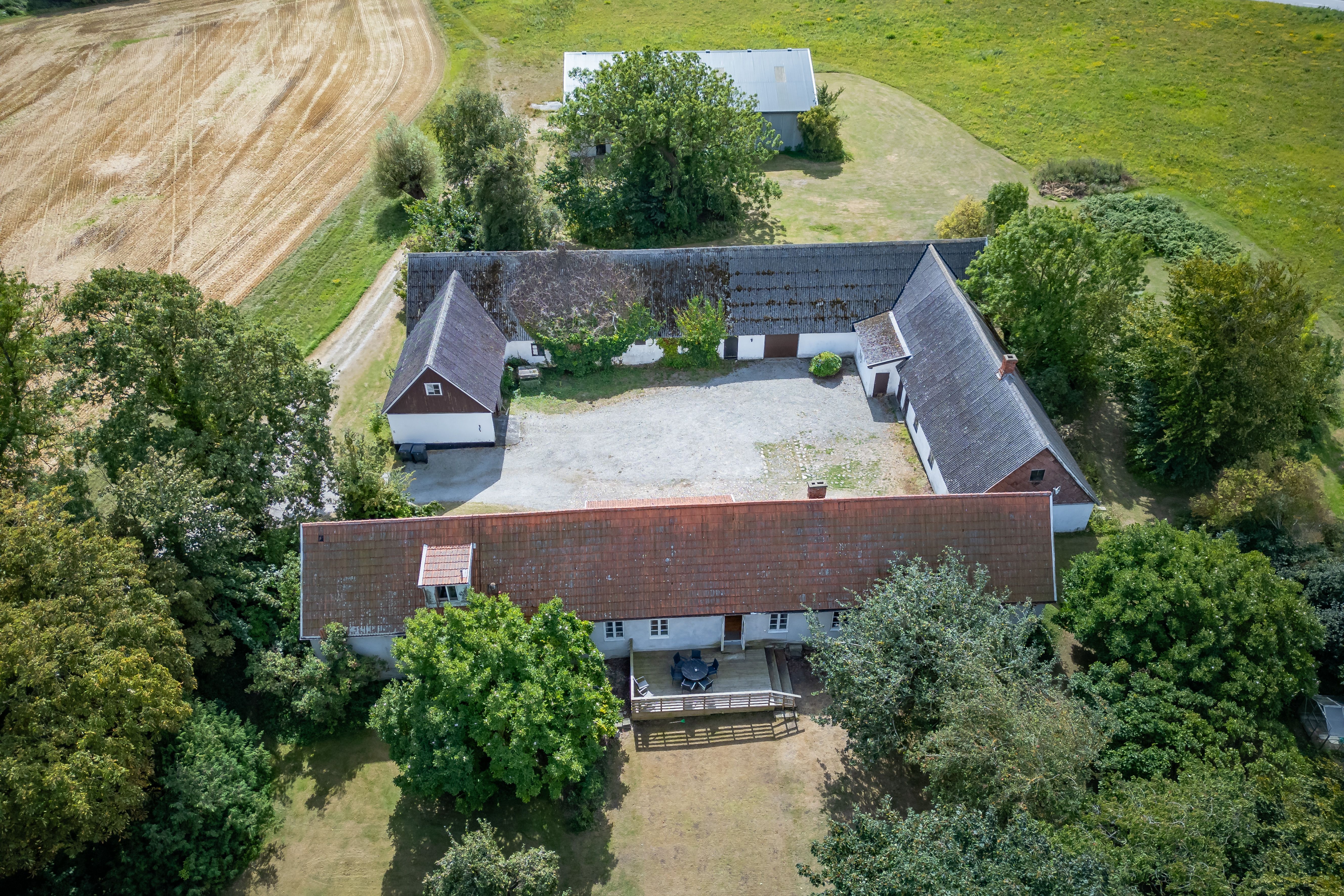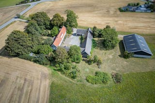 Kringbyggd gård utanför Trelleborg med klassisk boendemiljö och möjligheter i både mark och byggnader.