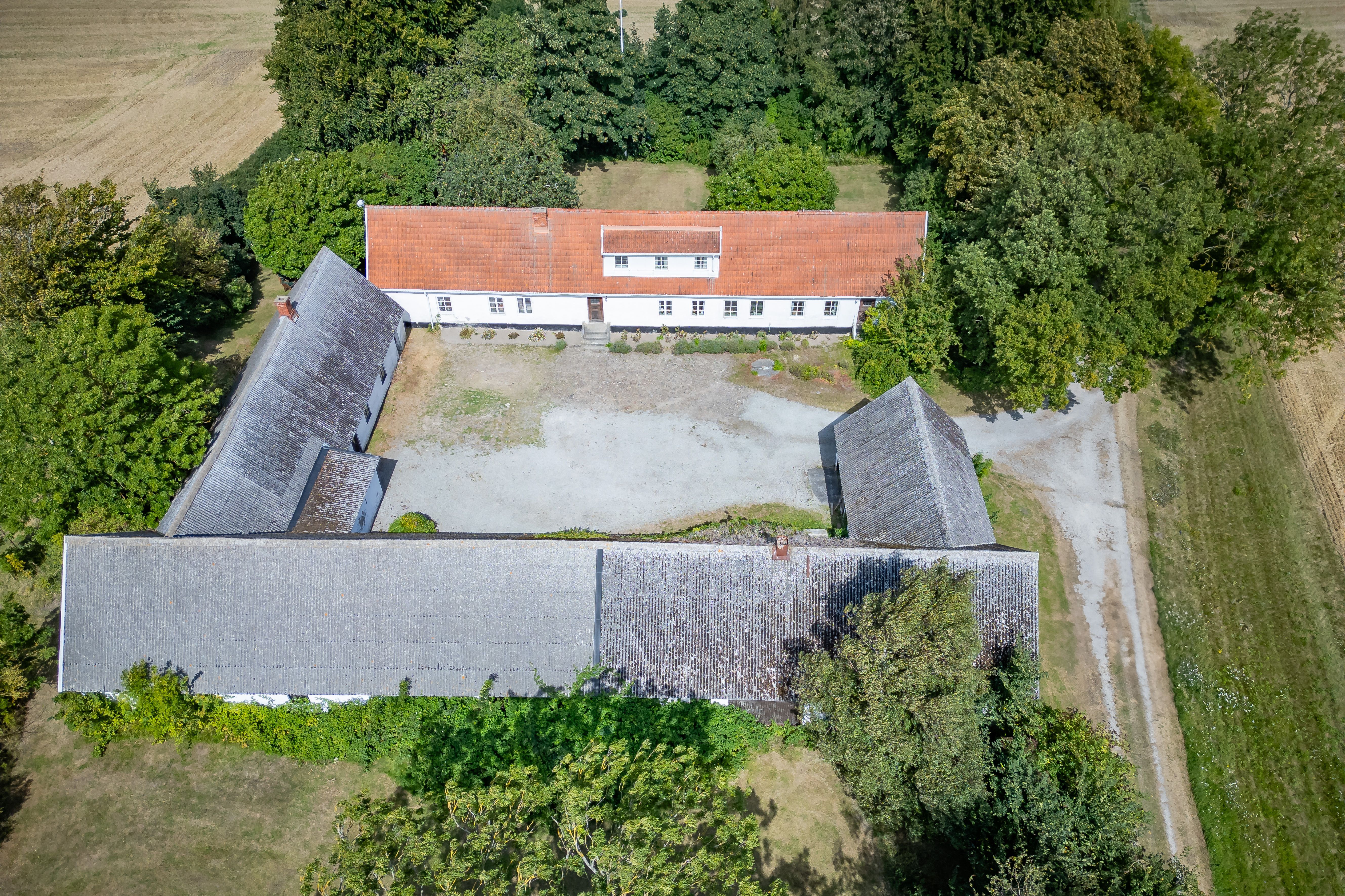 Runt gårdsplanen ligger en U-formation som utgörs av tre sammanbyggda gårdslängor och som trivsamt ramar in gårdsplanen tillsammans med bostadslängan.