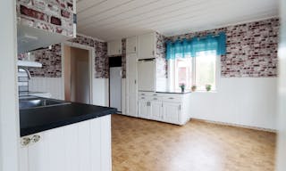 Timmerstuga av enklare standard med uppvärmning via elpanna och vedspis. Enskilt vatten och avlopp.