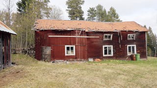 Äldre ladugårdsbyggnad som tidigare har använts till djurhållning, används idag som förråd.