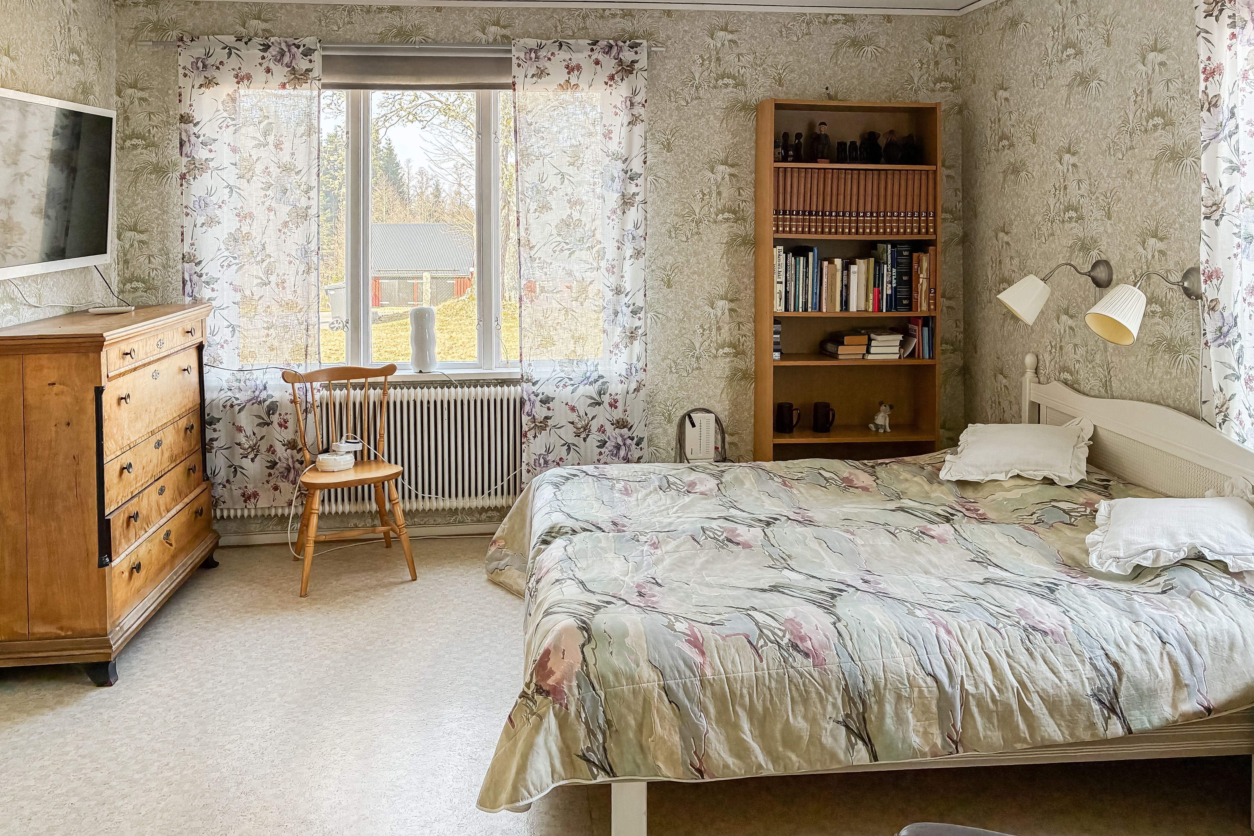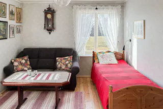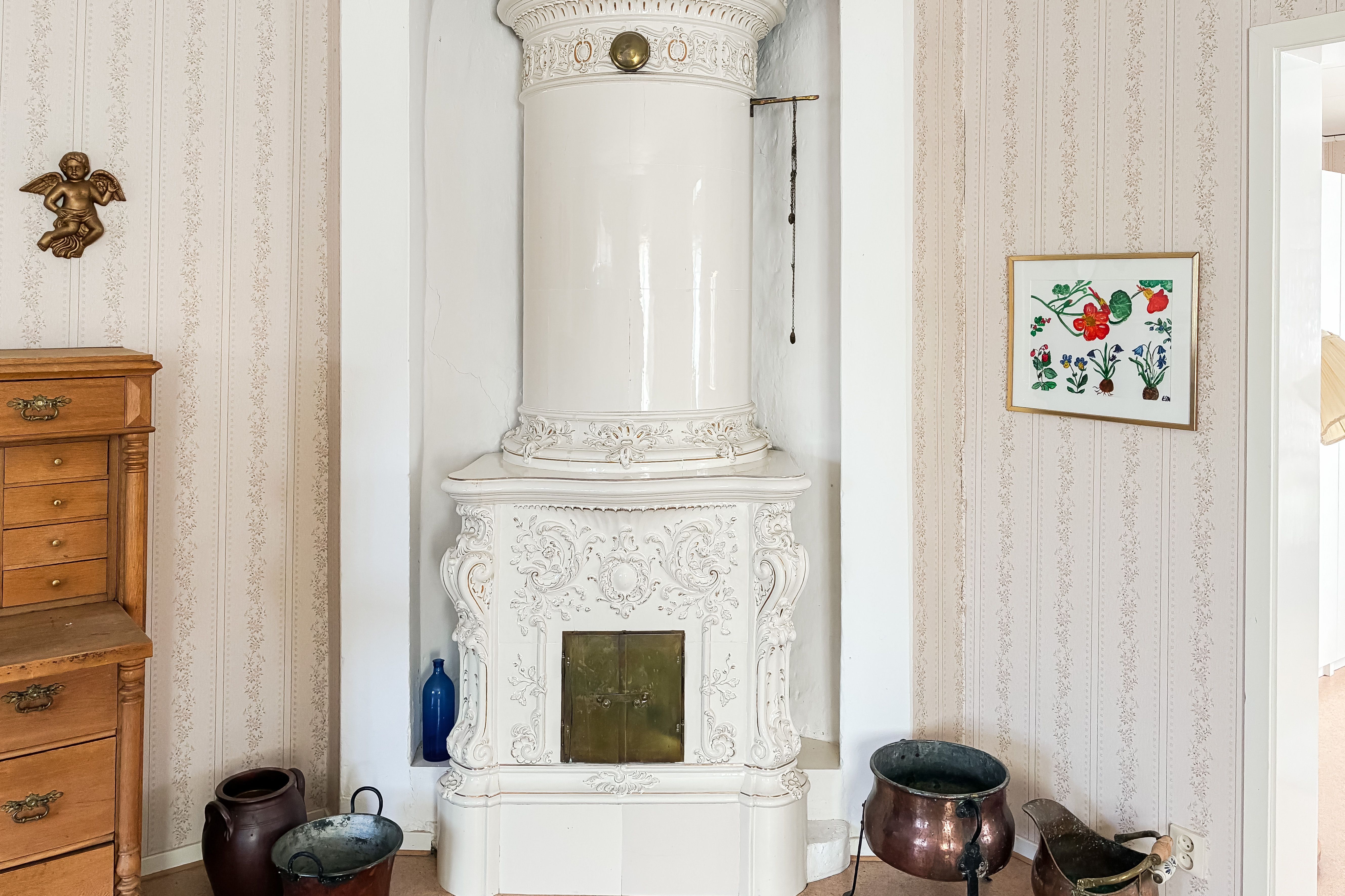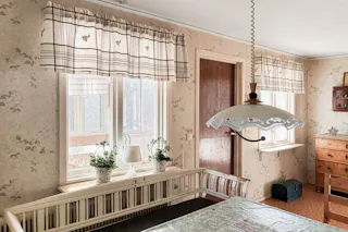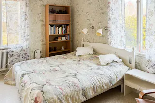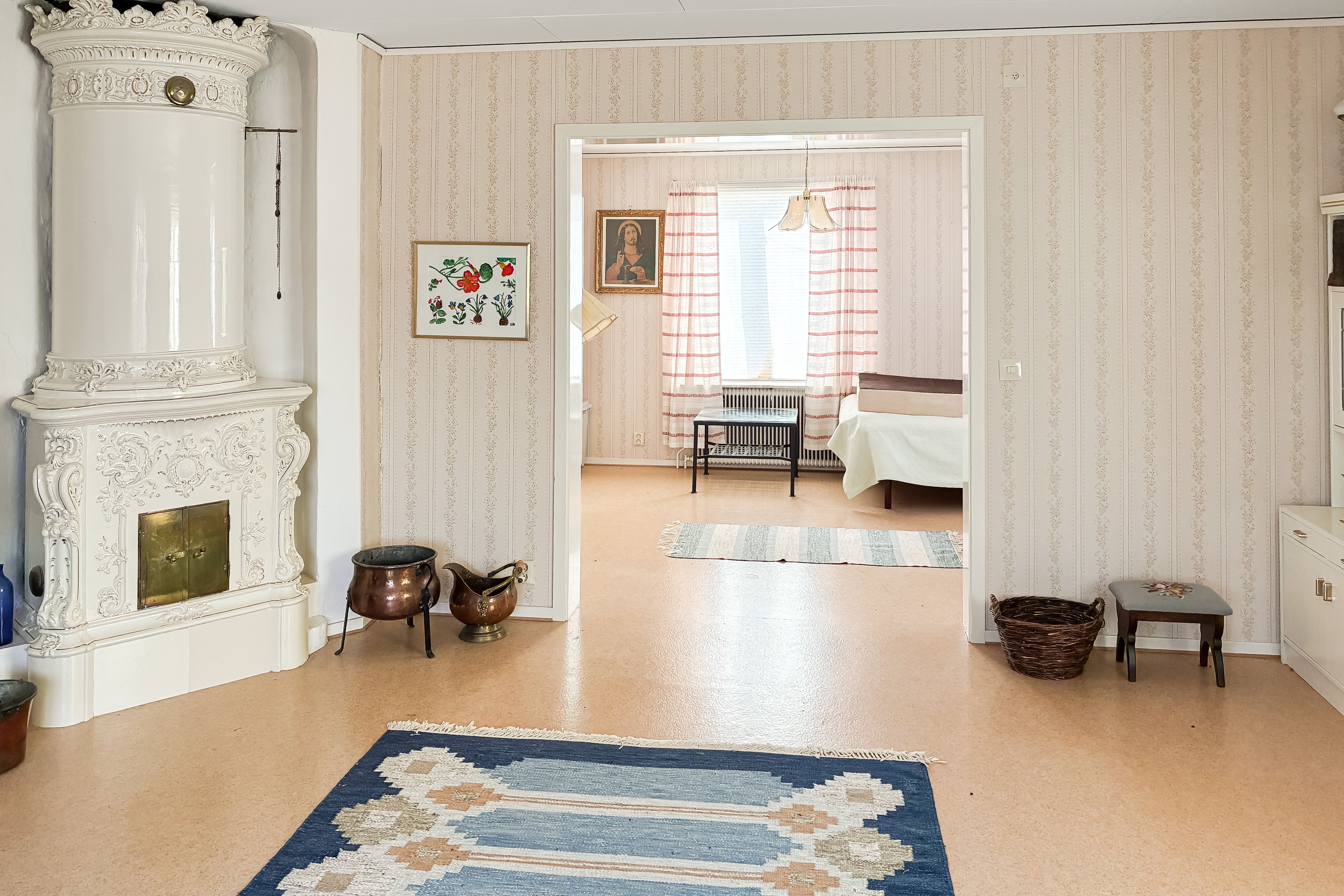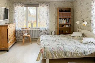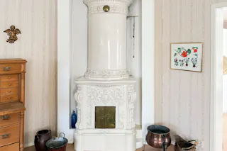 Sovrum med kakelugn.