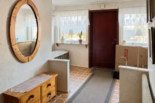 Hall med utgång till balkong.