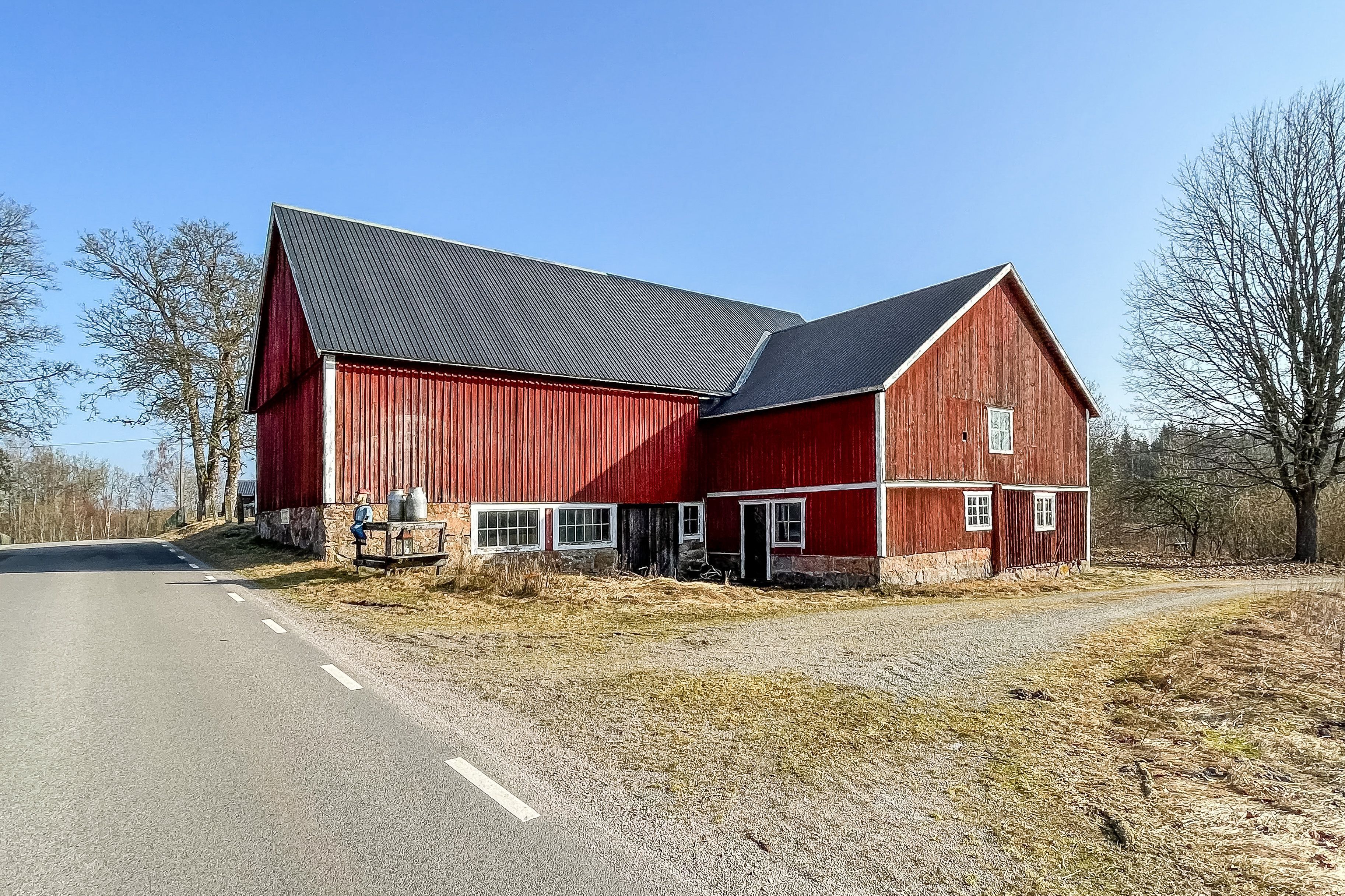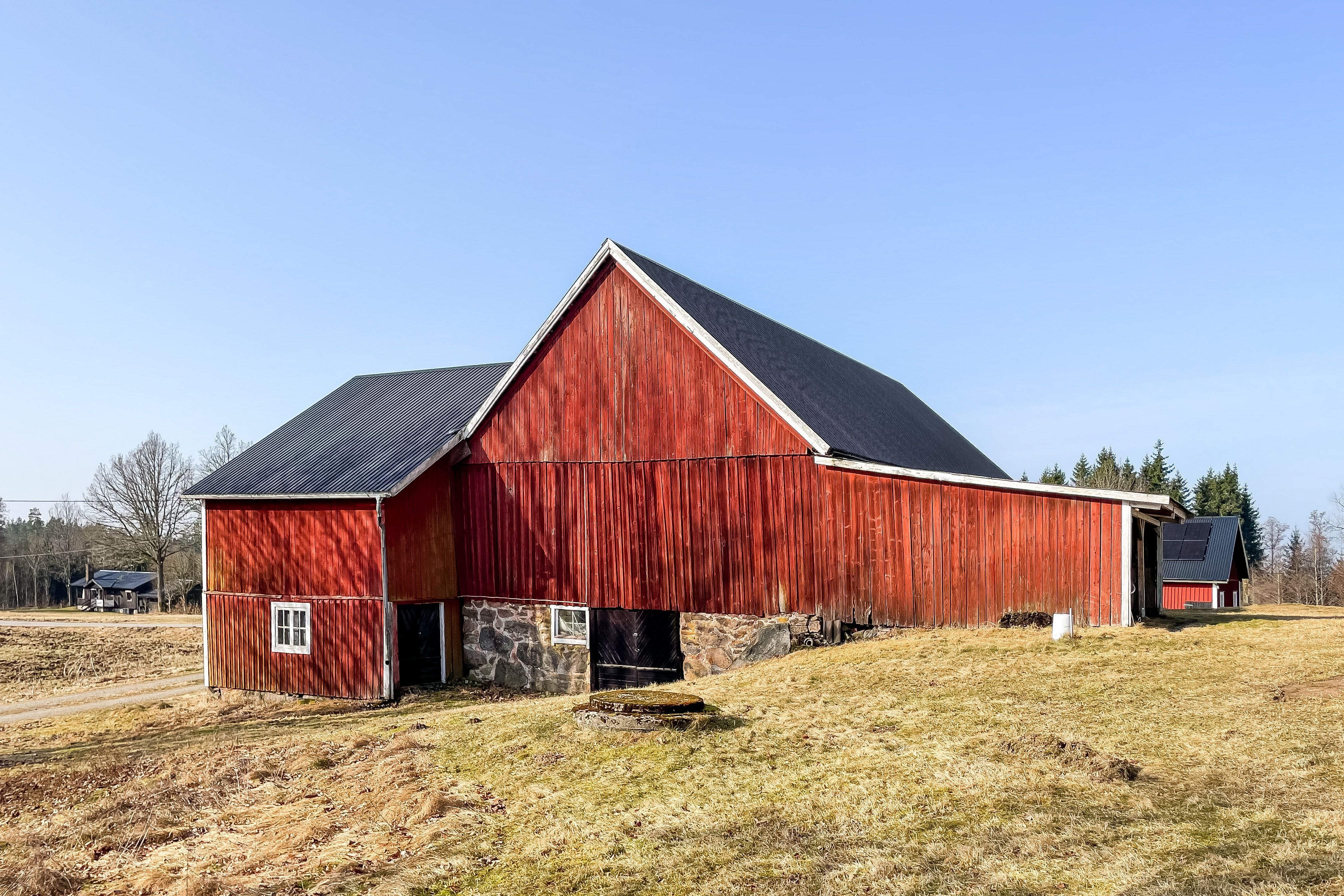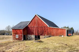 Ladugård med plåttak två plan