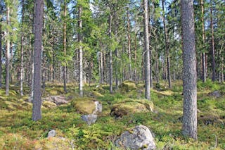Den produktiva skogsmarken uppgår totalt till 120,3 hektar med ett beräknat virkesförråd om ca 23 100 m³s varav ca 2 900 m³sk har nått slutavverkningsmogen ålder. Medelvolymen per hektar är ca 192 m³sk, medelboniteten på fastigheten är beräknad till 4,7 m³sk per hektar och den beräknade tillväxten är ca 705 m³sk för kommande tillväxtsäsong. Skogsbeståndet domineras av växtkraftiga gallringsskogar med tall som kommer växa in i slutavverkningsbar ålder inom en tioårs period. Det finns även en stor andel äldre skog med höga naturvärden som klassats som S3-skog.