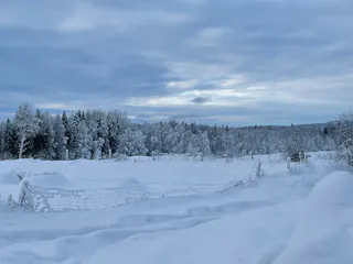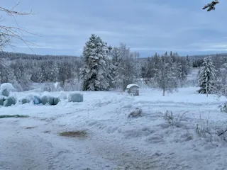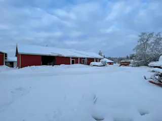Gården ligger mitt i den svenska delen av Tornedalen – ett område som kännetecknas av vidsträckt natur, levande kulturarv och en lugn livsmiljö med stark närhet till älven och skogen. Här erbjuds ett boende för den som söker stillhet, rymd och naturupplevelser året runt, samtidigt som grundläggande service och kommunikationer finns inom rimligt avstånd.