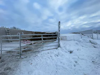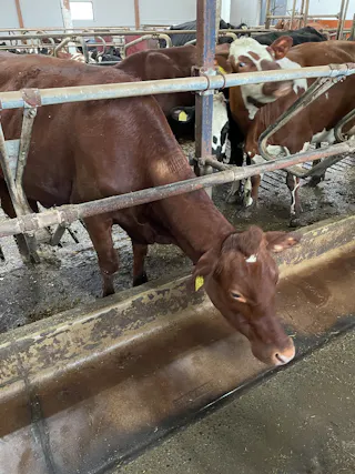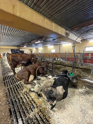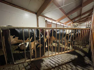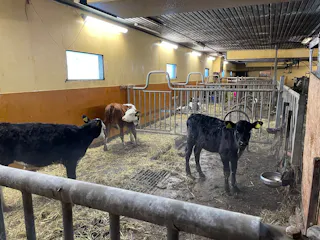 Det finns en äldre ladugårdsdel som används till sinkor, kalvar och kvigor fram till betäckning/insemination. 13 båsplatser för sinkor, 6 större kalvboxar samt 6 enkalvsboxar. För änden av ladugården finns två plansilofack under tak som används till förvaring samt för ensilerat krossat spannmål (korn).