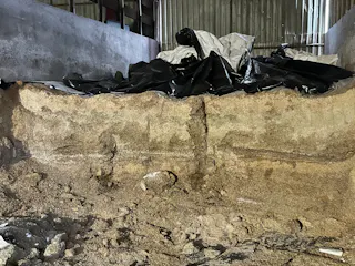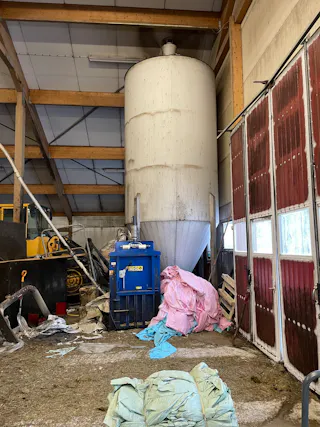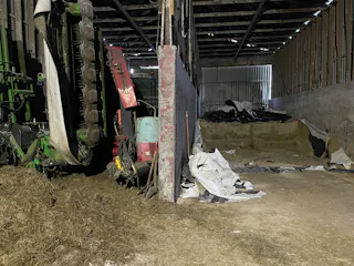 Plansilo med två fack, volym ca 1 100 m³. Dessutom betongplatta på mark för ensilering i limpa, area ca 250 m².