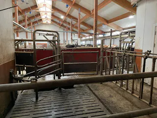 Nyare ladugård, uppförd 2009-2010, med en DeLaval VMS v310 mjölkrobot installerad 2021. 88 båsplatser. Möjlighet finns att utöka med ytterligare en mjölkrobot (kräver förmodligen tillbyggnad och förlängning av stallet). 3 kraftfoderstationer. Bandutfodring. Blandarvagn. Spaltgolv med flytgödselutgödsling. Kontor. Personalrum.