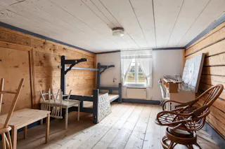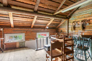 Timmerstuga (oisolerad) med två olika rum med varsin ingång varav ena med loft.