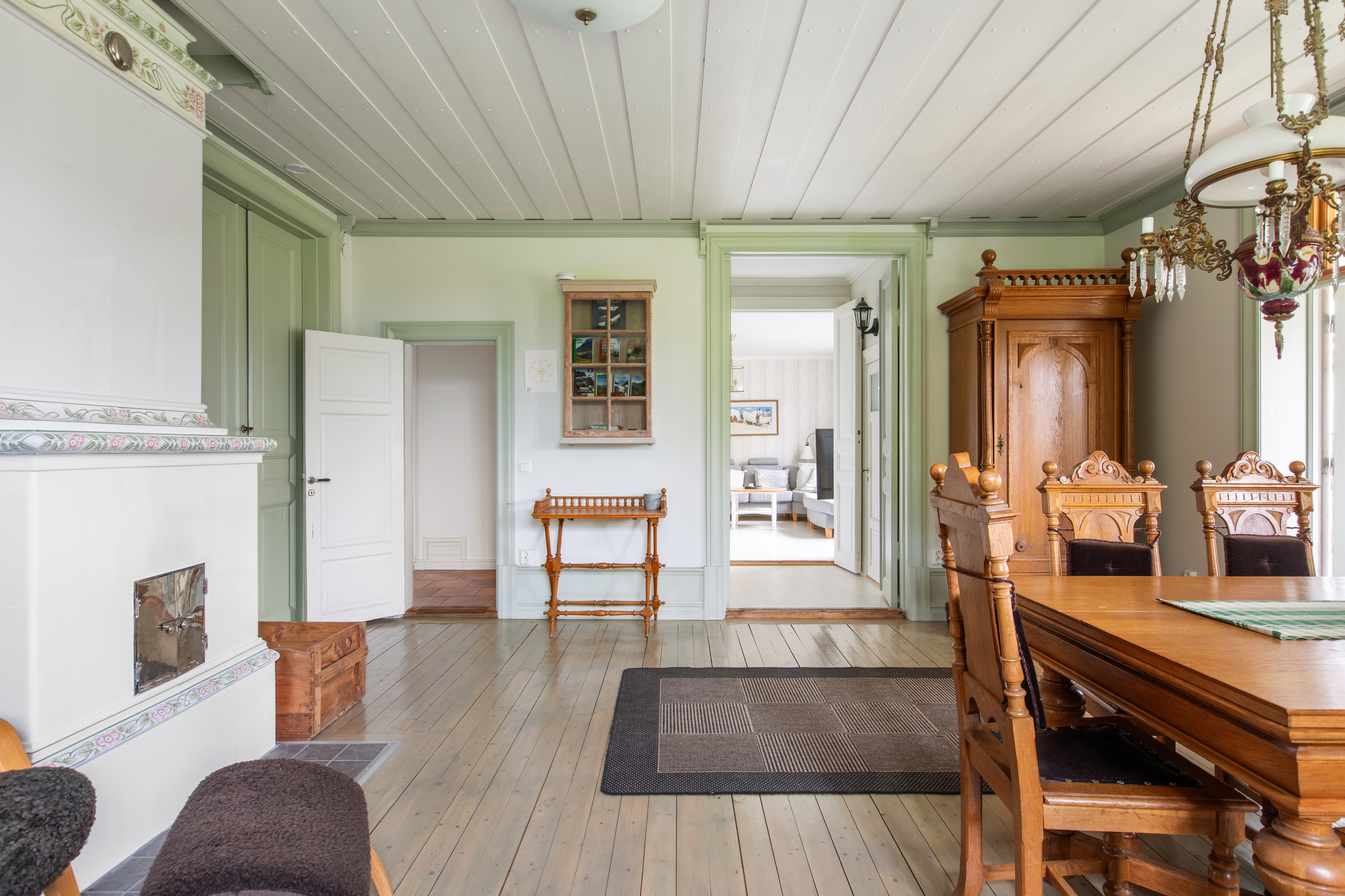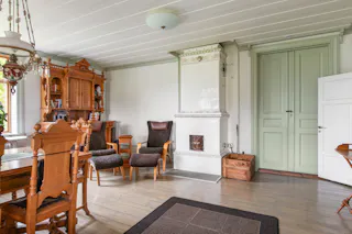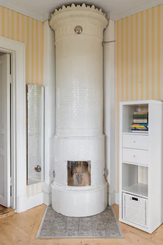 Eldstäder: Fyra kakelugnar, varav 3 eldningsbara.