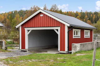 Isolerad carport på f.d. gödselplattan. Går med lätthet att göra om till garage med en port.