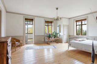 Sovrum 1, stort sovrum med utgång till balkong. Skrubbar/garderober, en större skrubb/klädkammare.