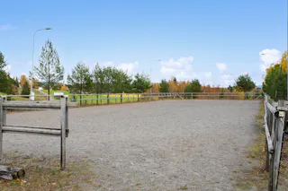 Till gården finns en belyst och inhägnad paddock.