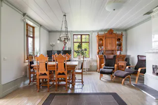 Bostadshuset är smakfullt renoverat och bjuder på charm med bevarade kakelugnar, rymliga rum och gott om plats för hela familjen. Här är det bara att flytta in och börja leva gårdslivet.