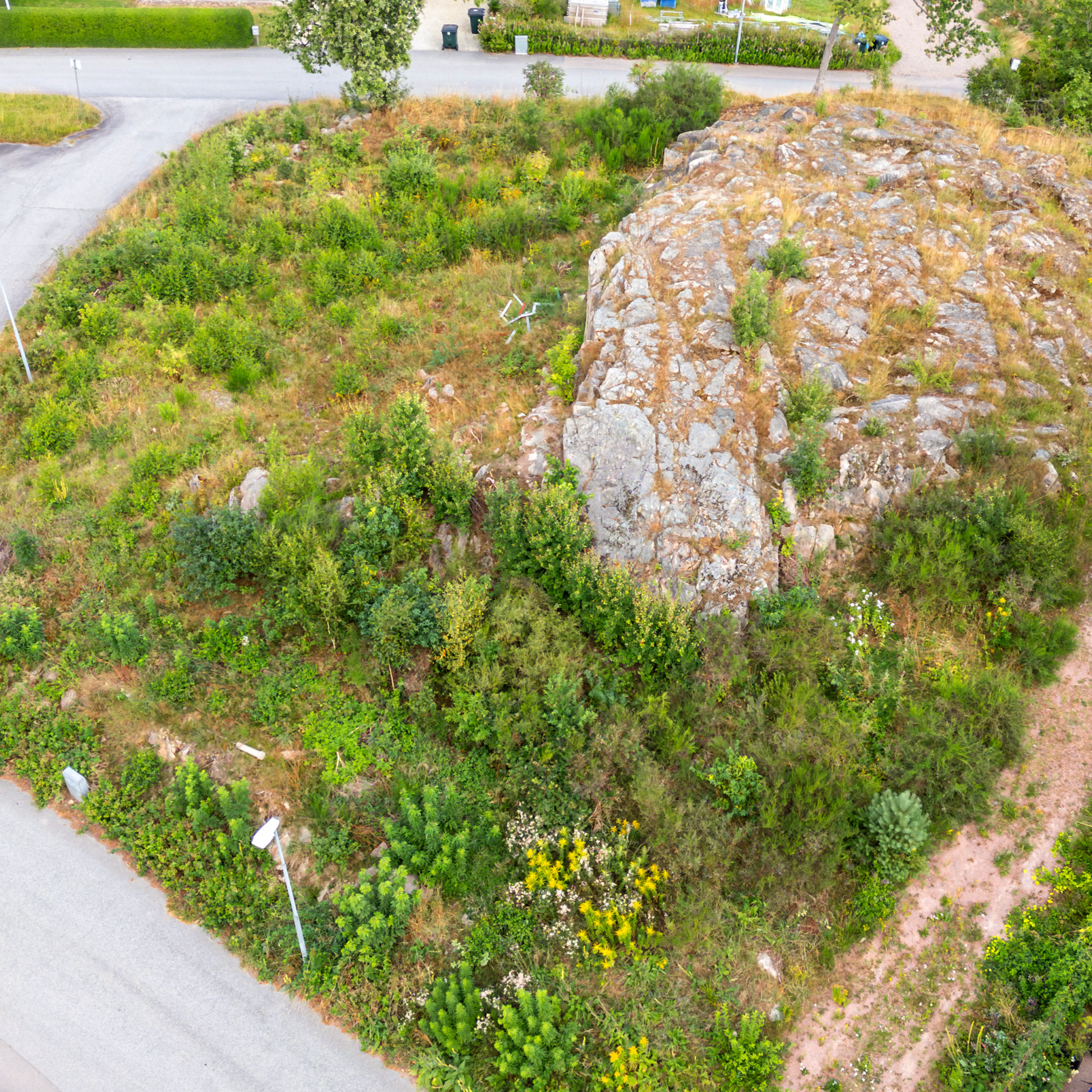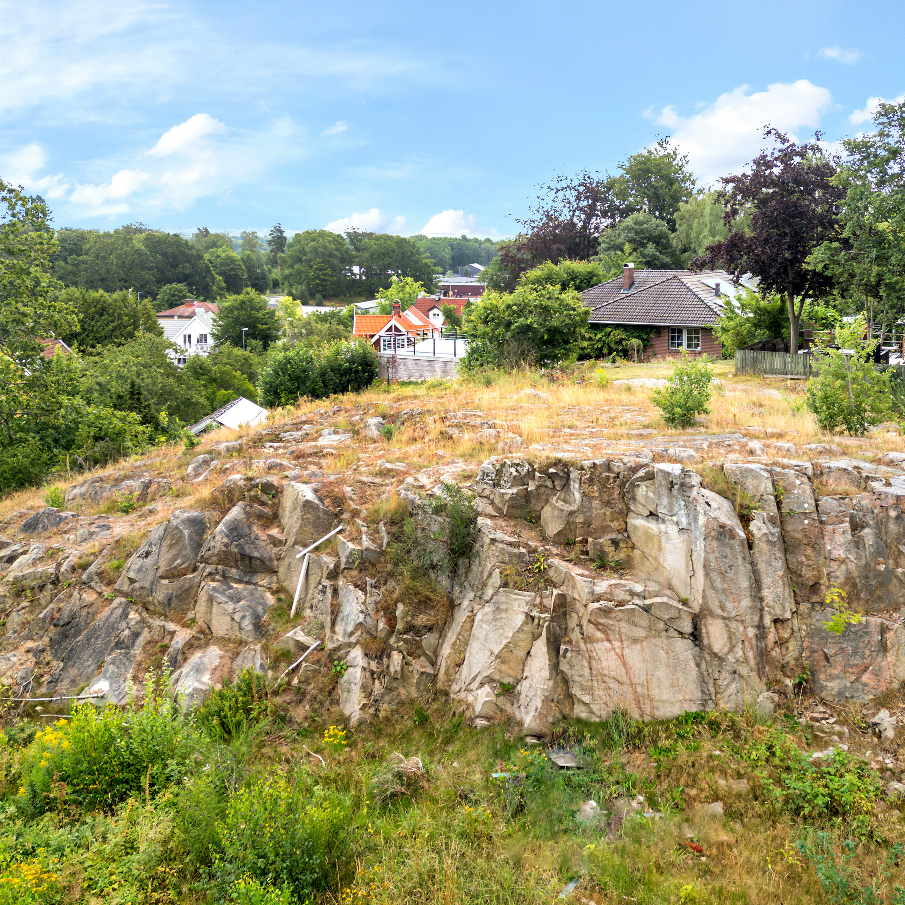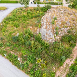 Med en större stenhäll som naturlig mittpunkt erbjuder tomten en unik chans att bygga ett hus i harmoni med naturen och med utsikt som en extra bonus.