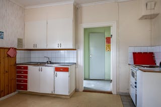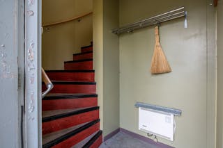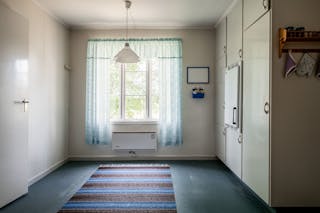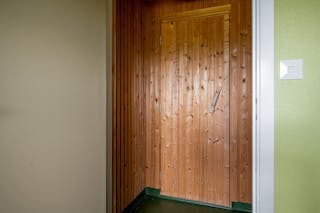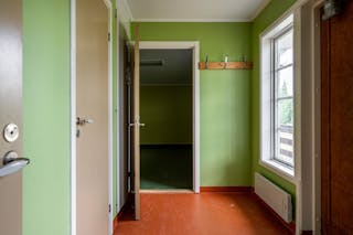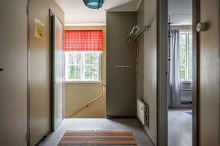 Vid entrén finns rymligt gemensamt förråd och hall med plastmatta och målade väggar.