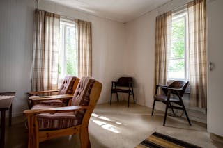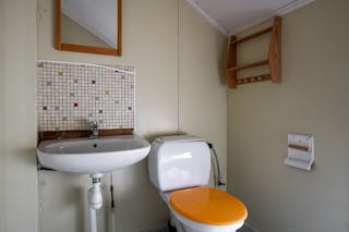 Stugan är uppdelad i två delar som vardera har wc med handfat, rum där matplats tidigare varit samt duschdel och stor bastu.