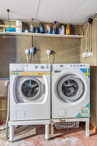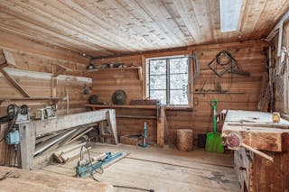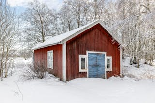 Fin bakstuga med en snickeriverkstad mm 126 kvm det finns även en stenkällare på östra långsidan.