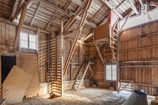 Denna byggnad inrymmer djurstall, hö loge, garage och lösdrift mm och den har betongplatta, 890 kvm