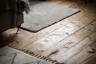 Generöst huvudsovrum med furugolv
