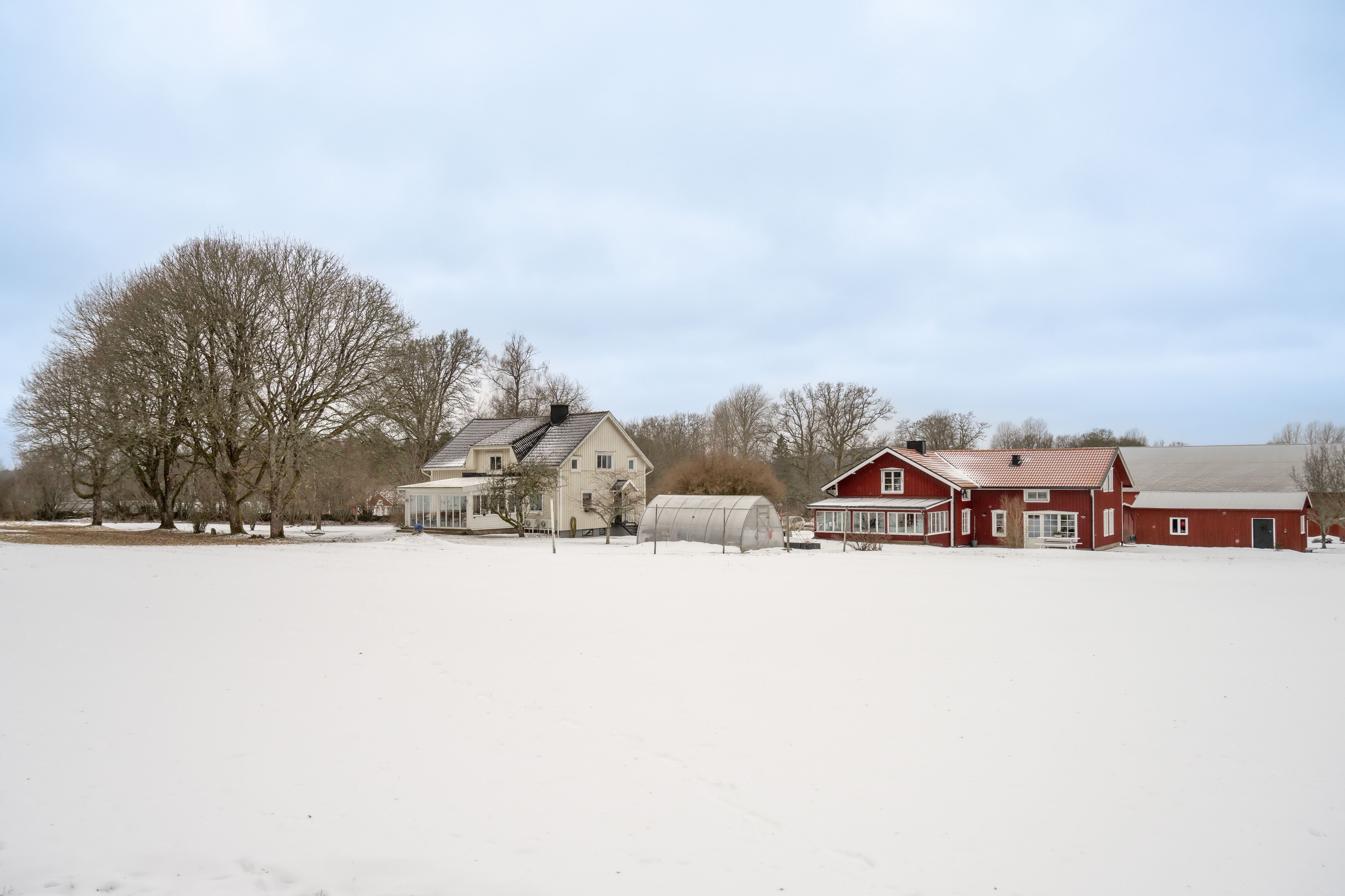Gården erbjuder två fullvärdiga bostadshus, vilket gör fastigheten idealisk för generationsboende, uthyrning eller kombinerat boende och verksamhet. Bostäderna präglas av lantlig charm med eldstäder, generösa sällskapsytor och ett fint ljusinsläpp, samtidigt som moderna bekvämligheter finns representerade. Till detta hör ett omfattande byggnadsbestånd med en stor ekonomibyggnad om cirka 937 kvadratmeter med verkstadsdel, isolerat garage, rymlig carport samt flera äldre uthus. En separat ladugård, belägen en bit från gårdscentrum, skapar ytterligare möjligheter för djurhållning eller avskild verksamhet.